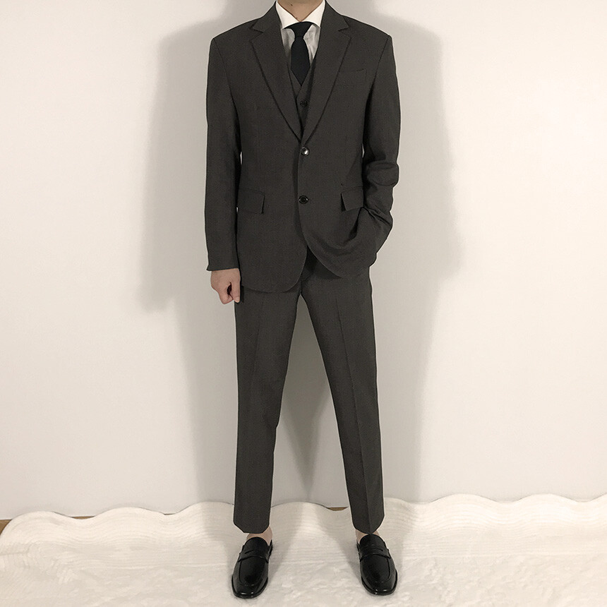 (Autumn) 슬림 그레이브라운 쓰리피스 수트 [FLEF1959]