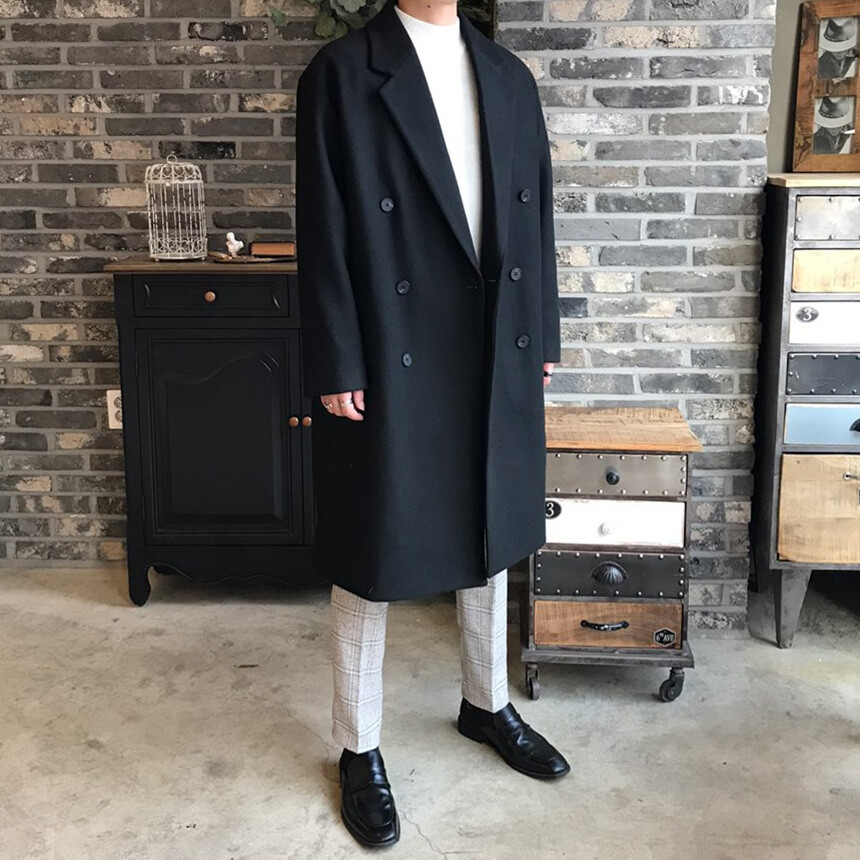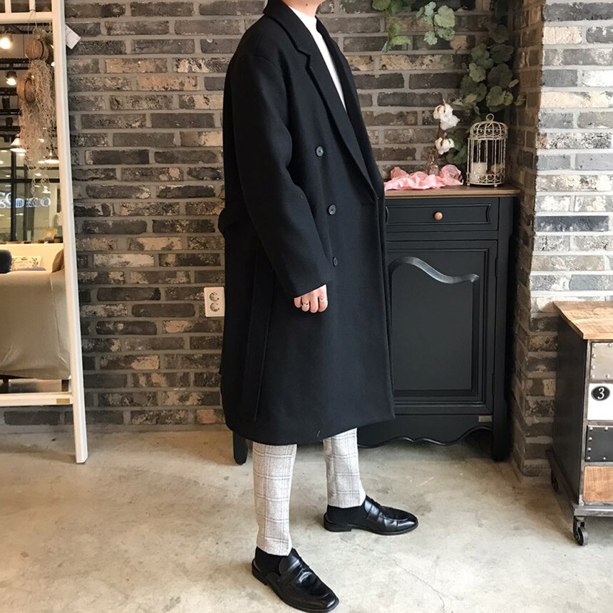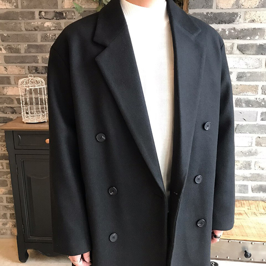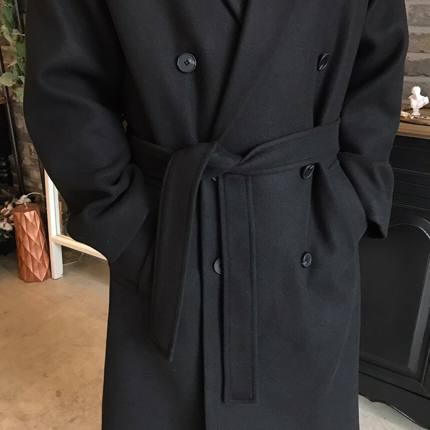 (winter) 울50% 오버핏 더블 블랙 로브코트 [CLAW0023]