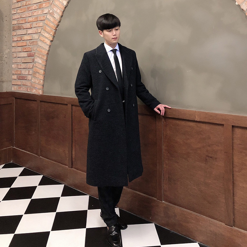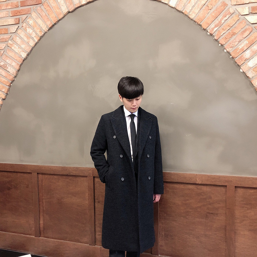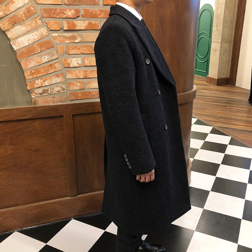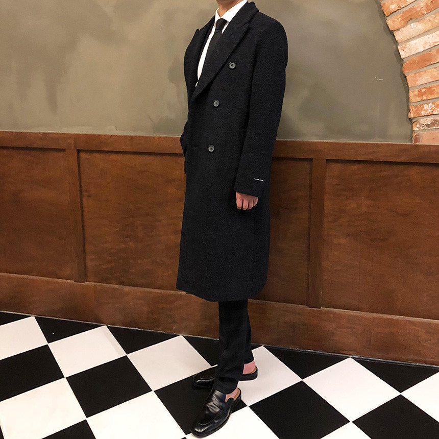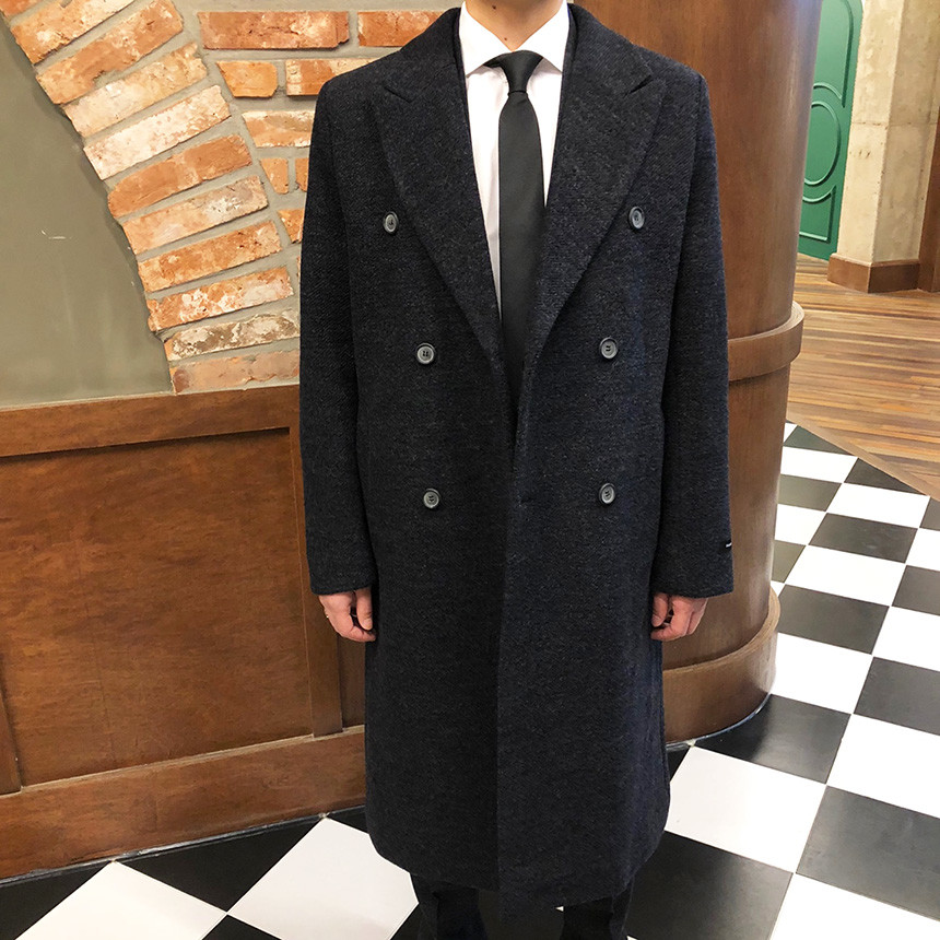 더블 디자인이며 무릎 밑까지 오는 롱한 기장입니다.