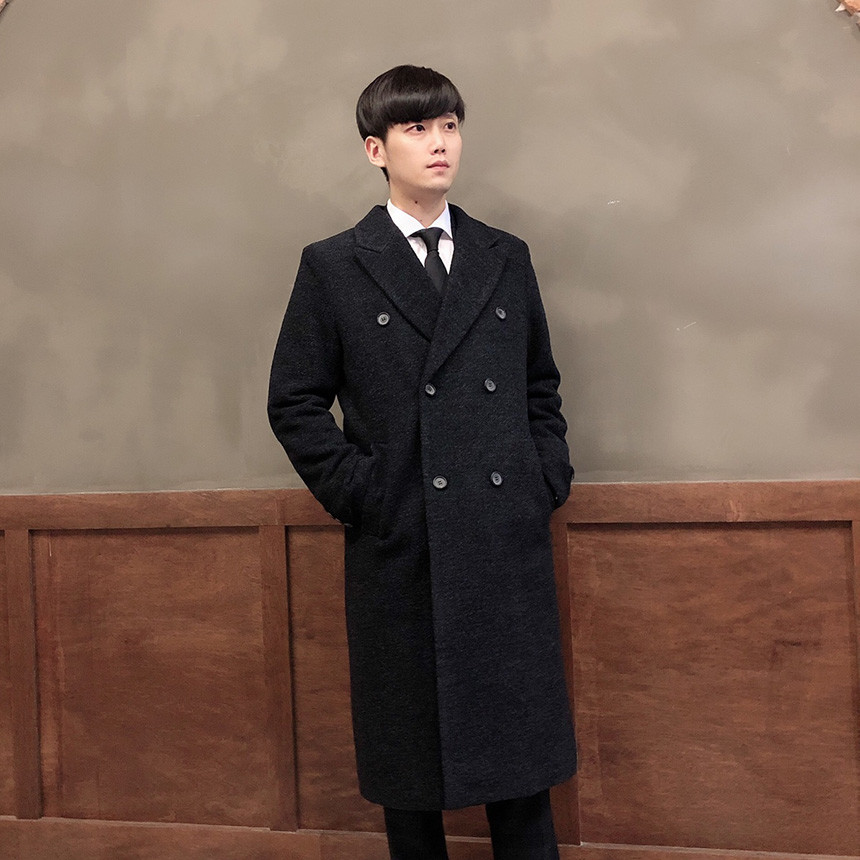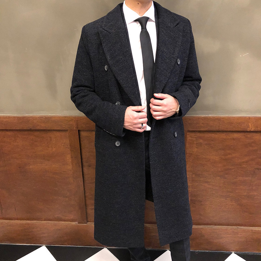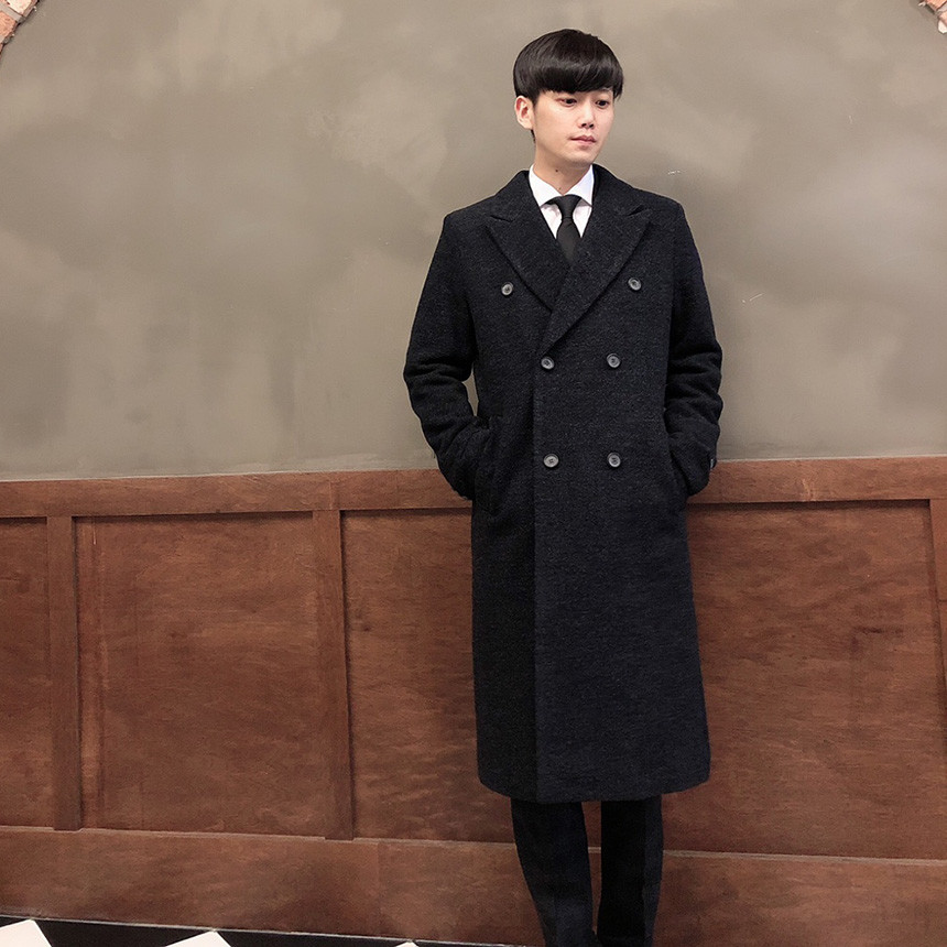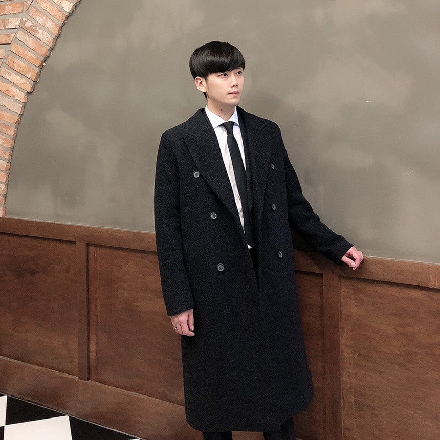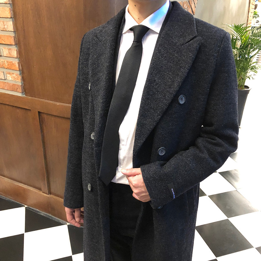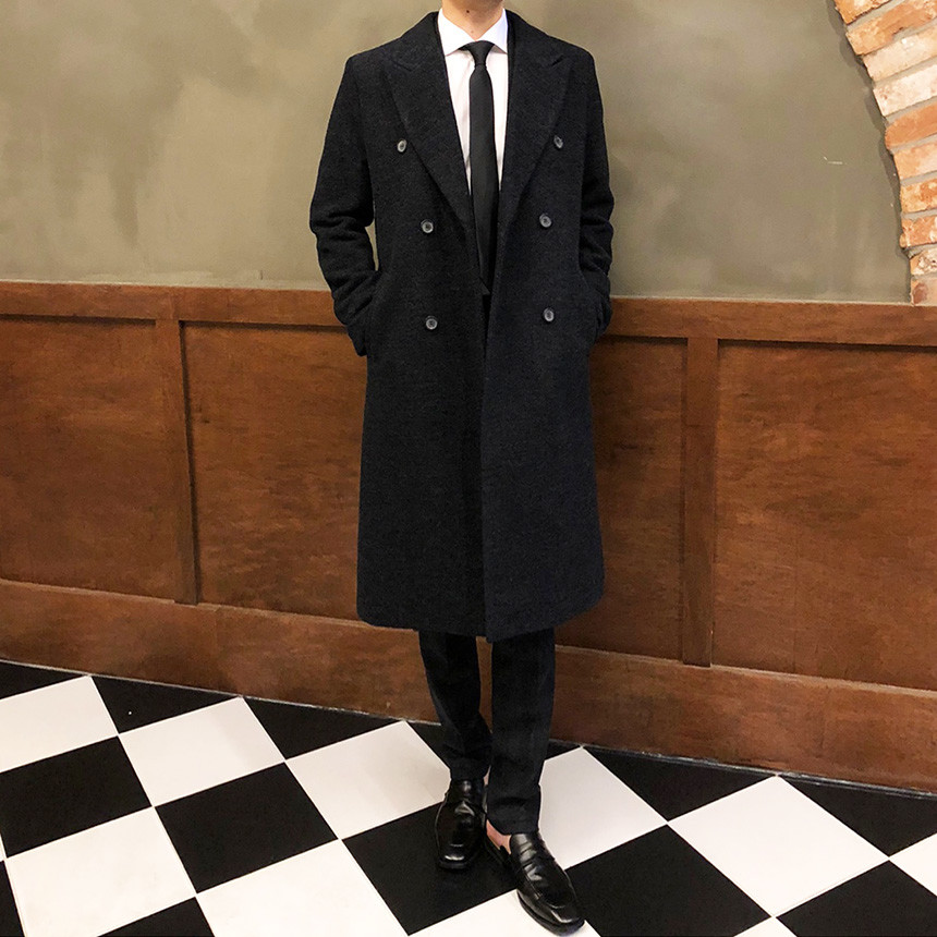 더블 디자인이며 무릎 밑까지 오는 롱한 기장입니다.