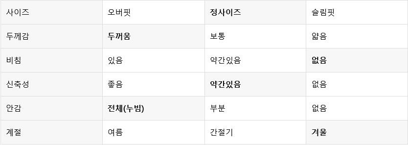평소 입던 스타일과 달라 만족도가 낮을 수 있습니다