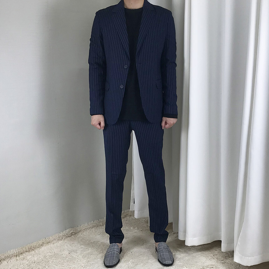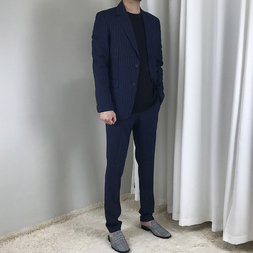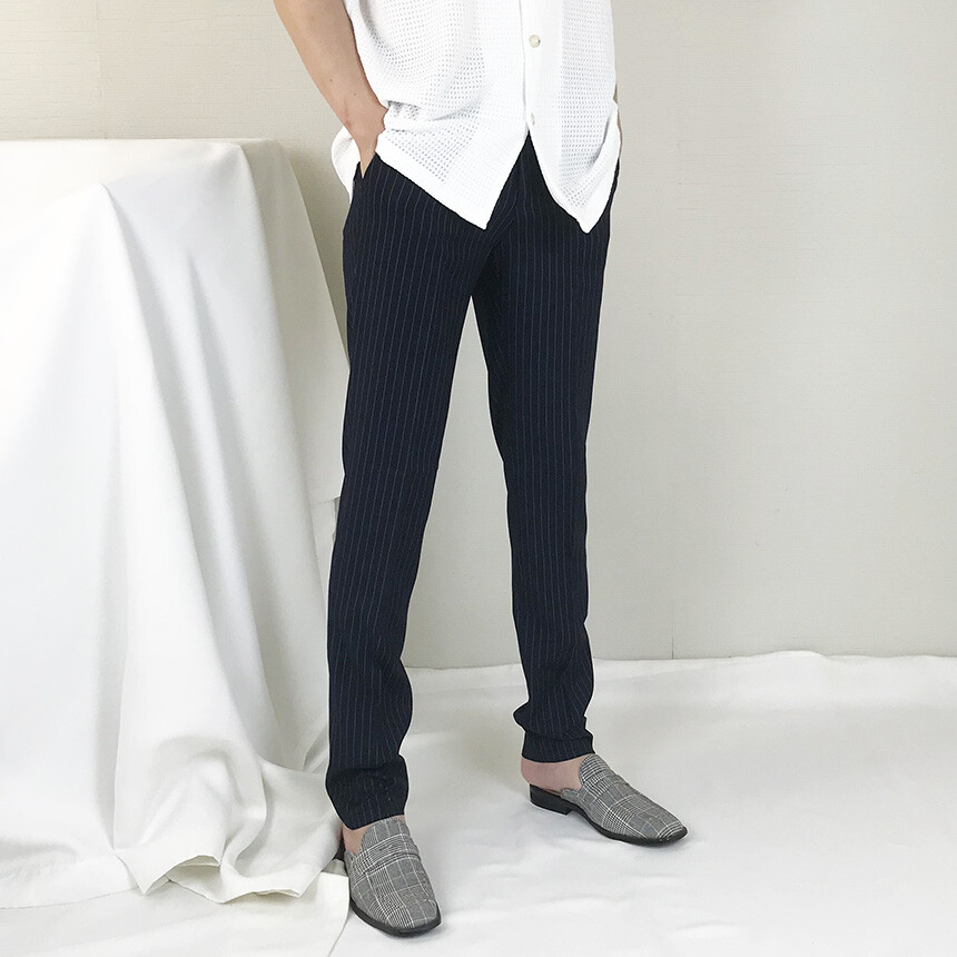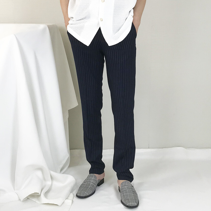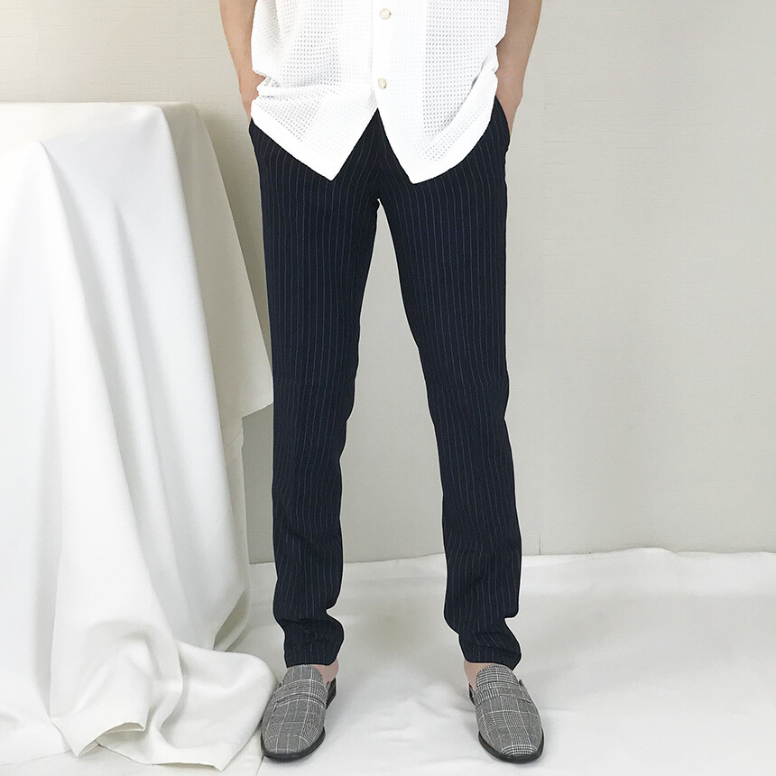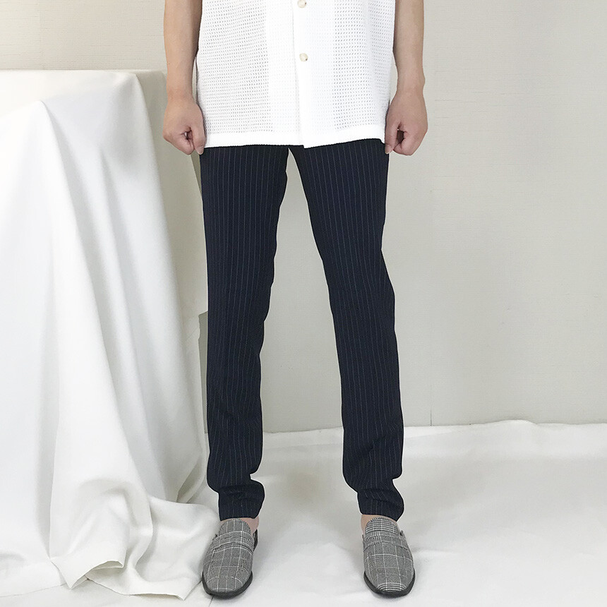 (summer) 슬림 네이비 스트라이프 썸머 슬랙스 [BXAFLCM1841]