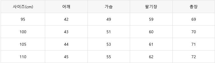 예시)본인사이즈100이면 100-105사이즈 구매 권장