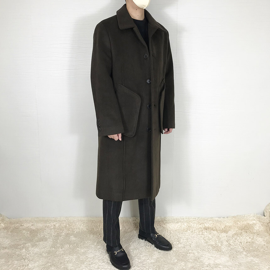 (겨울) 애쉬브라운 아웃포켓 오버 모직 롱코트 [BXACLBW0085]