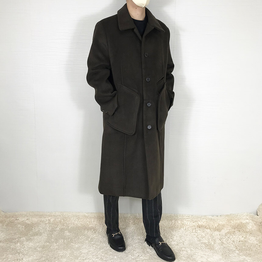 (겨울) 애쉬브라운 아웃포켓 오버 모직 롱코트