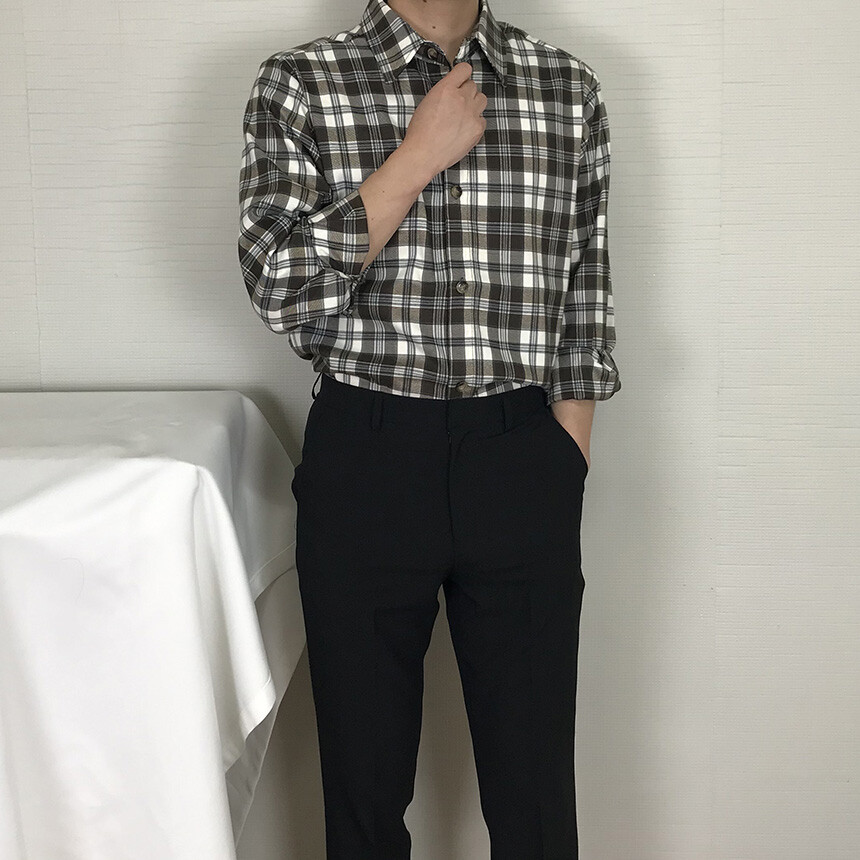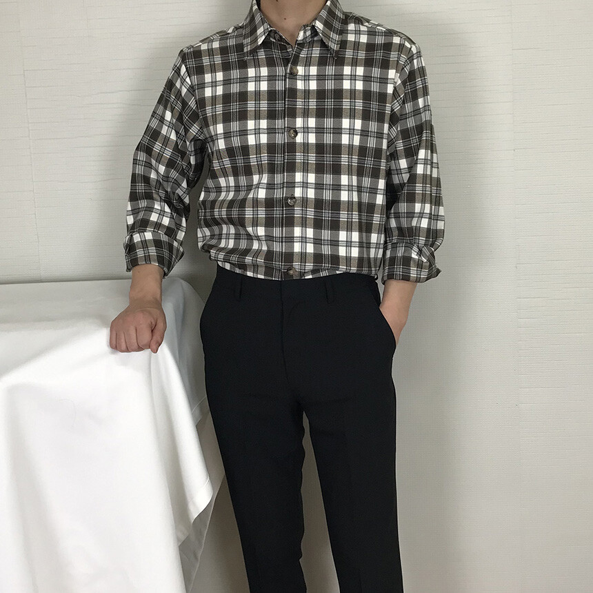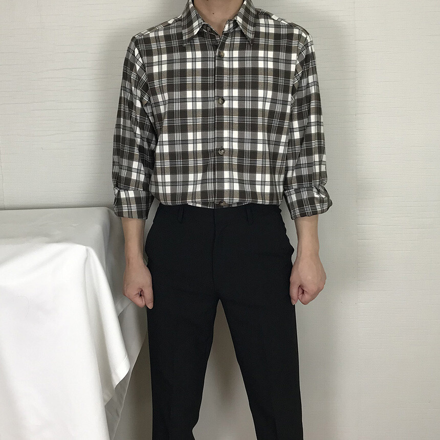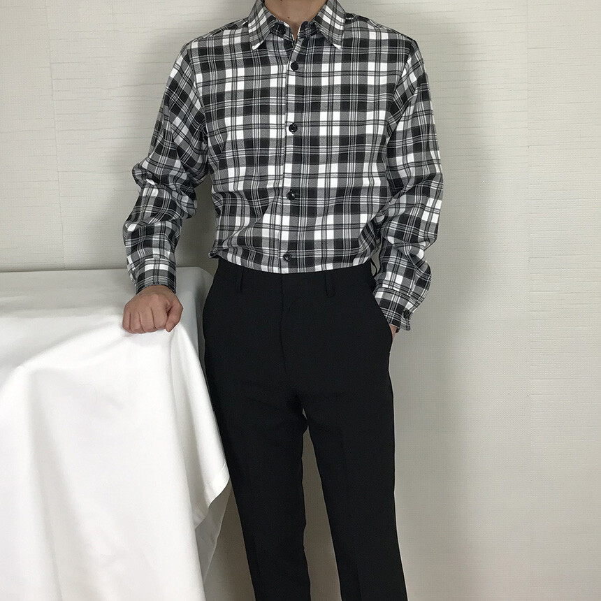 (autumn & winter) 코튼 체크 카라 유러피안 셔츠(2col) [SLCF5001]