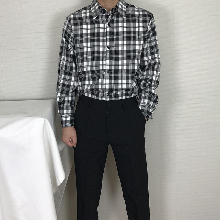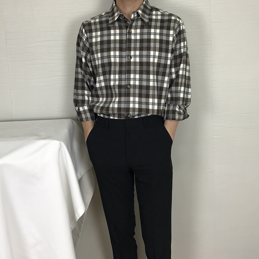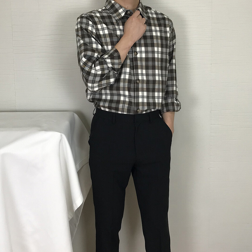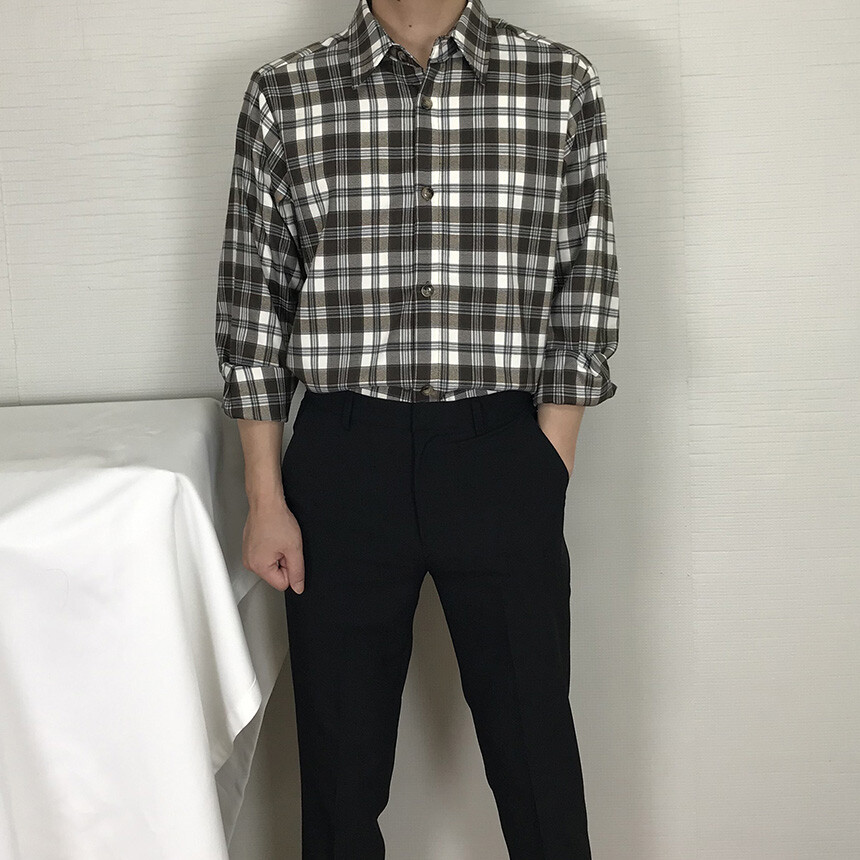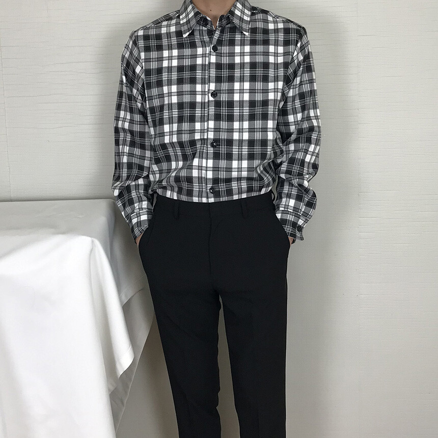(autumn & winter) 코튼 체크 카라 유러피안 셔츠(2col) [SLCF5001]