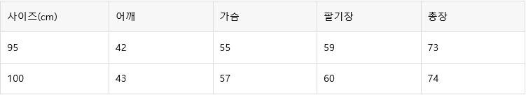 예시)본인사이즈100이면 100-105사이즈 구매 권장
