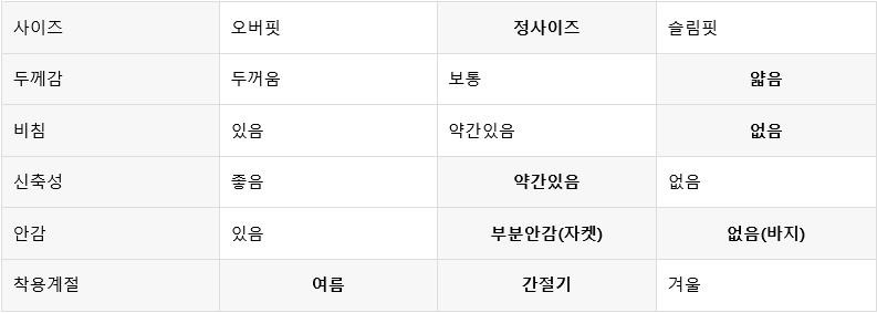 입으셨을때 떨어지는 옷맵시가 큰 장점이라고 생각합니다!