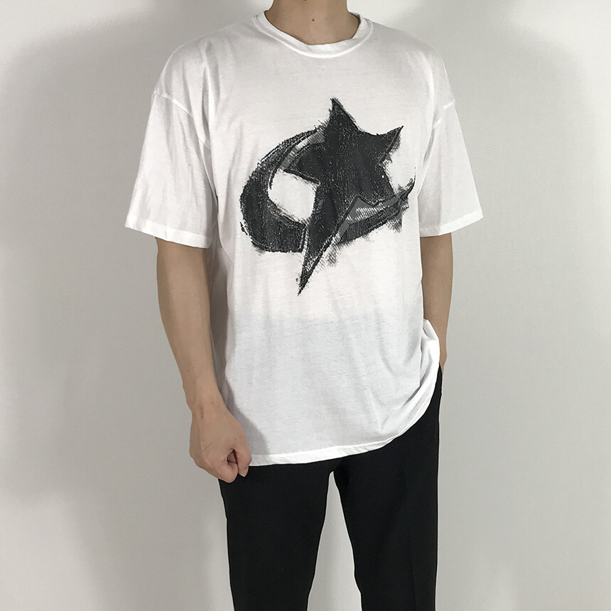 (기획) 남녀공용 세미오버핏 스타페인팅 면반팔티