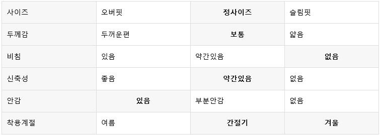 평소 입던 스타일과 달라 만족도가 낮을 수 있습니다