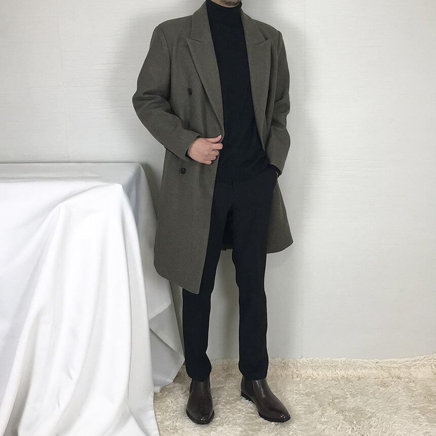 (winter) 세미오버핏 멜란지카키 더블 울코트 [CLCW0214]
