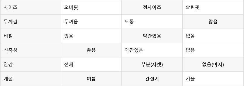 - 오버핏을 제외한 정장 및 코트류는 대부분 슬림핏으로 덩치가 좋은분들은 맞지 않을 수 있습니다