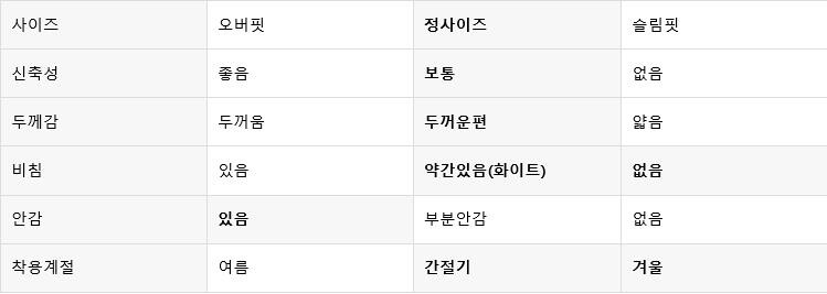 평소 입던 스타일과 달라 만족도가 낮을 수 있습니다
