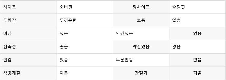 평소 입던 스타일과 달라 만족도가 낮을 수 있습니다