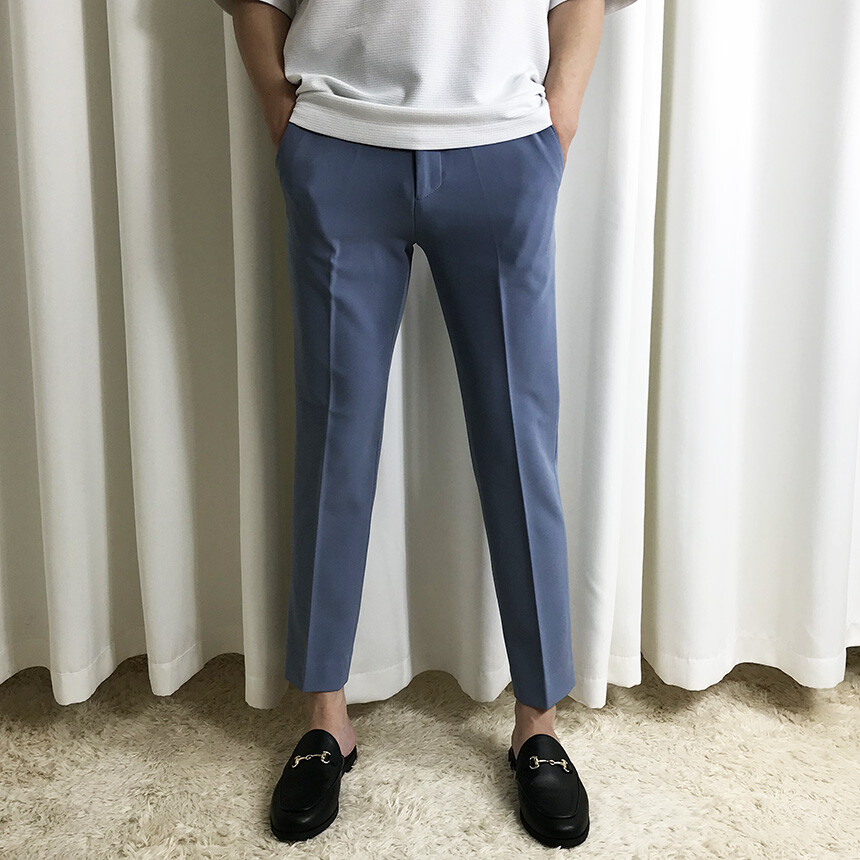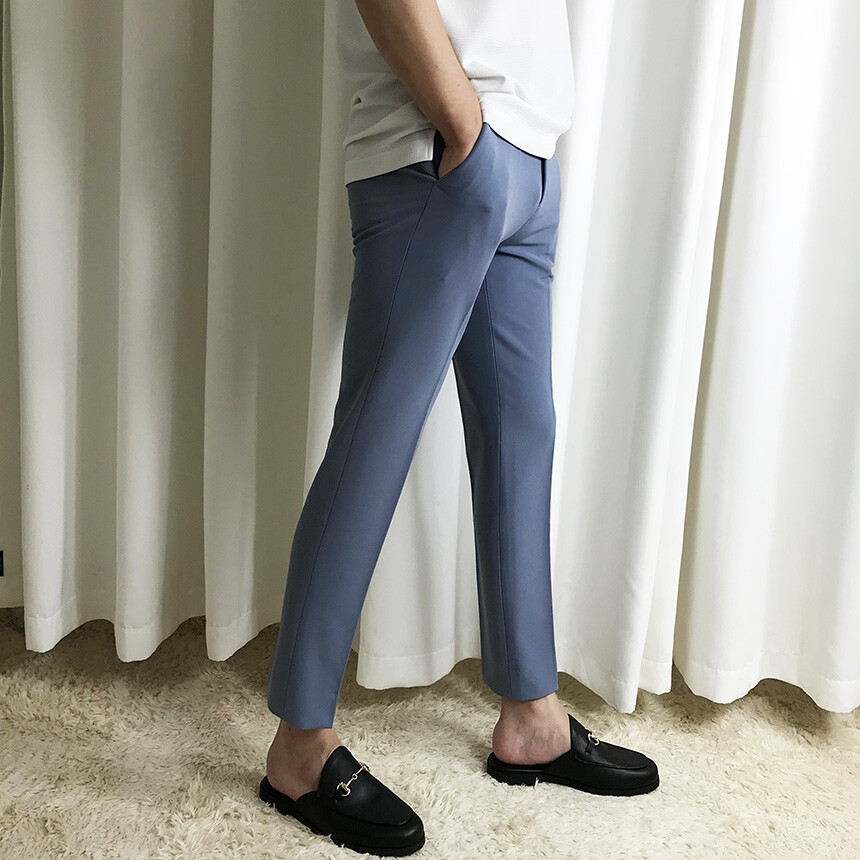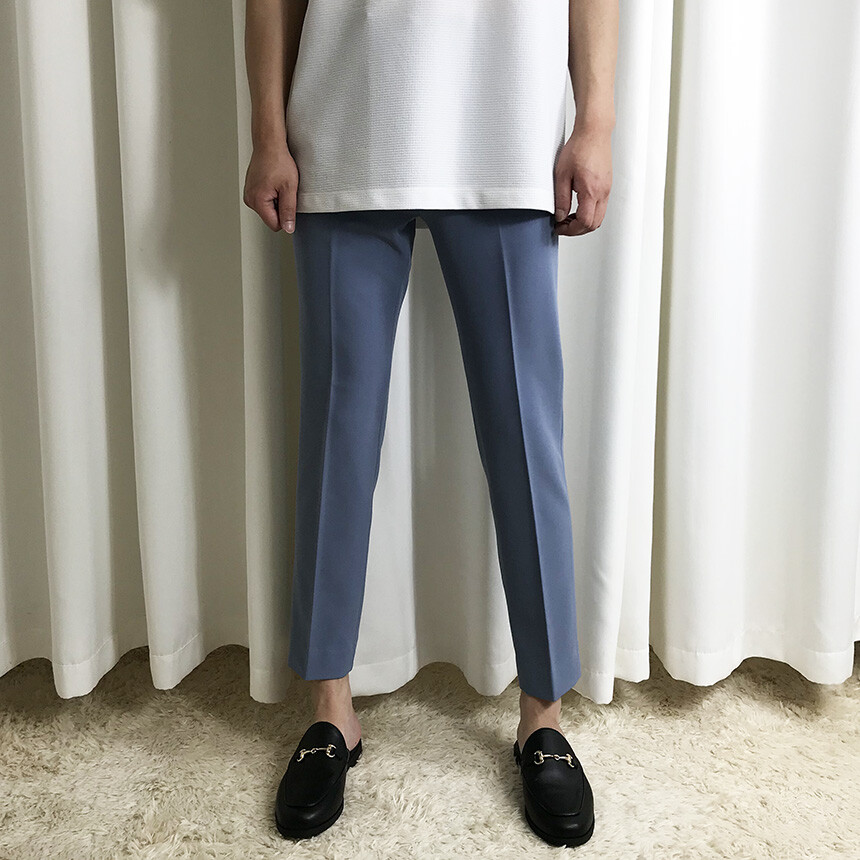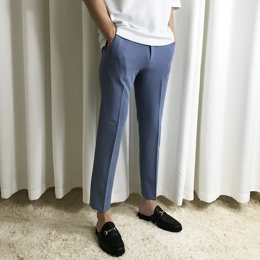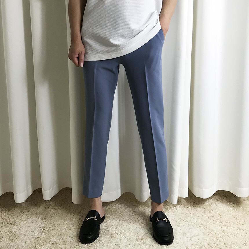 (간절기) 콘플라워블루 슬림 세미 9부 슬랙스