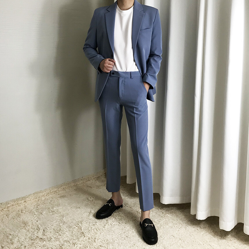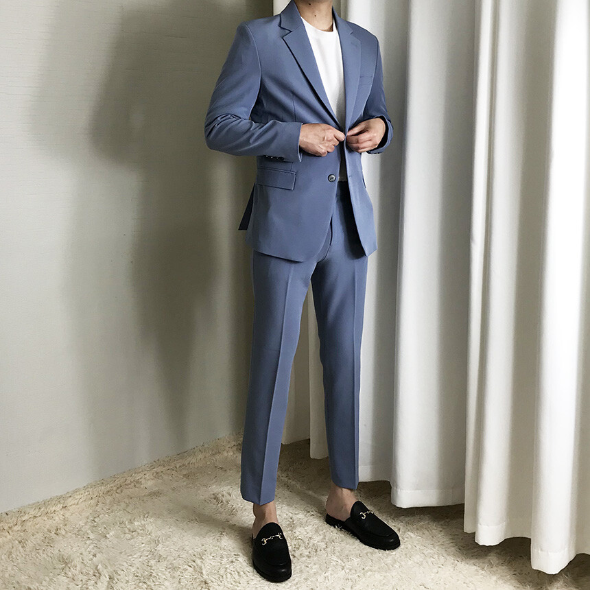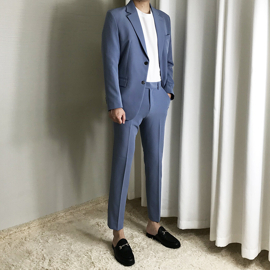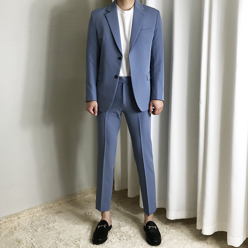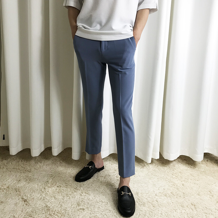 (간절기) 콘플라워블루 슬림 세미 9부 슬랙스
