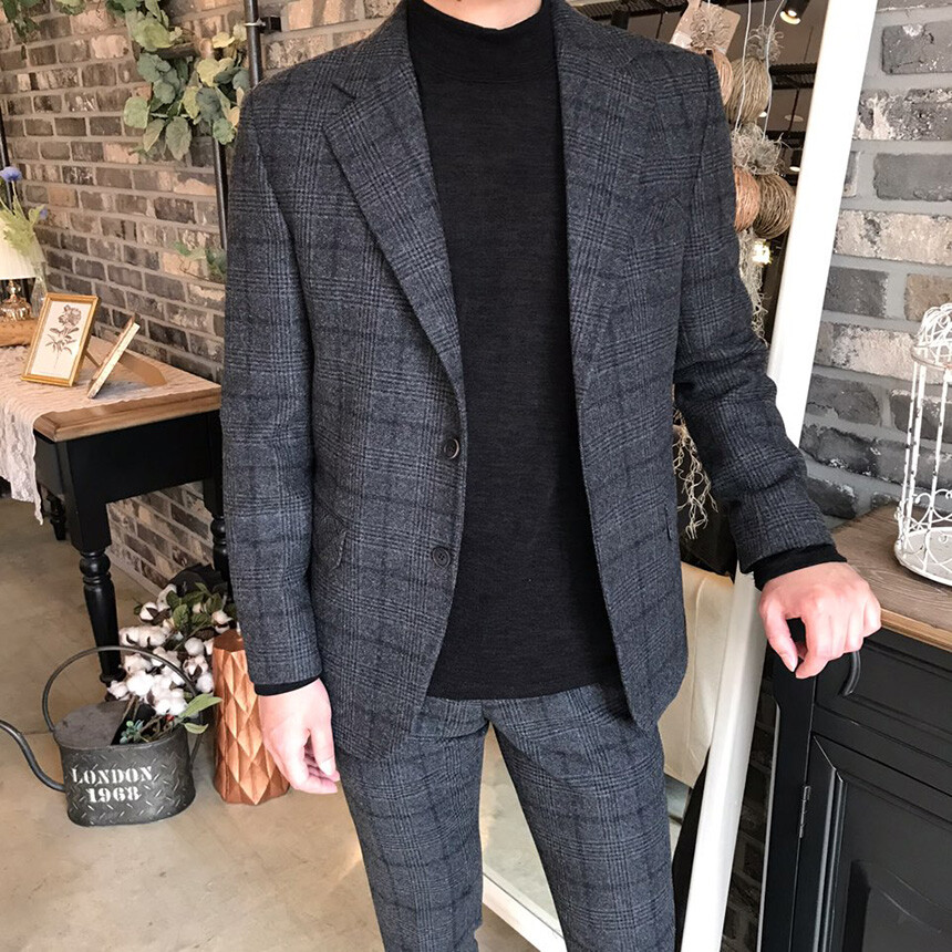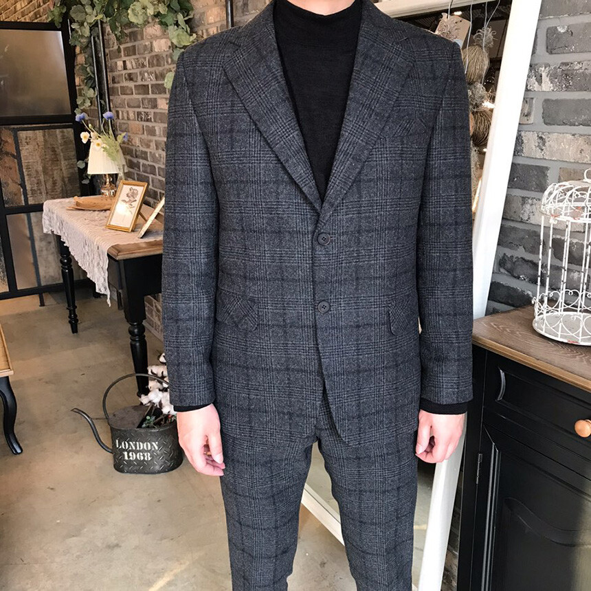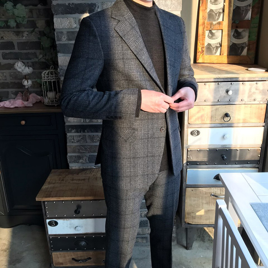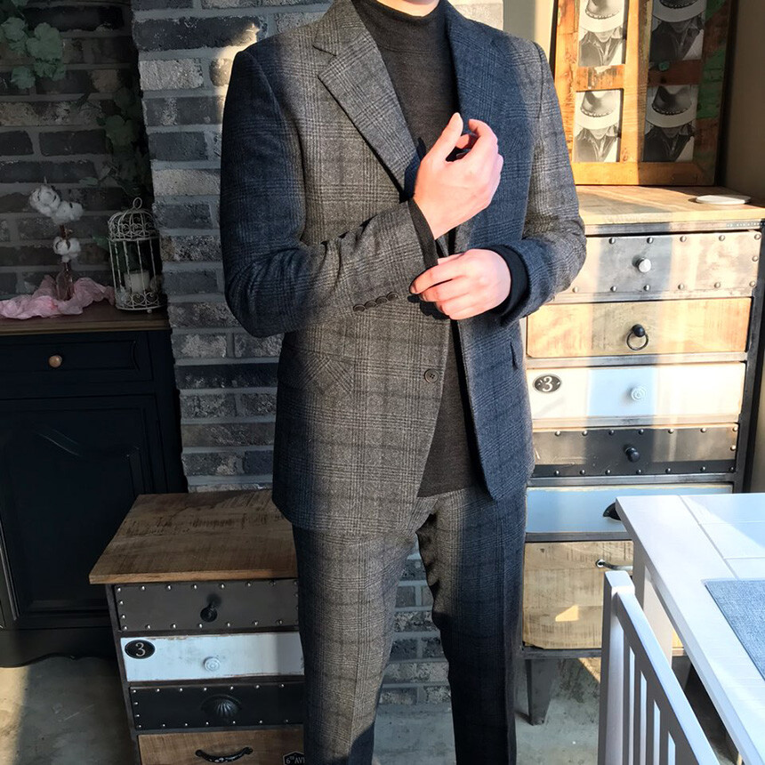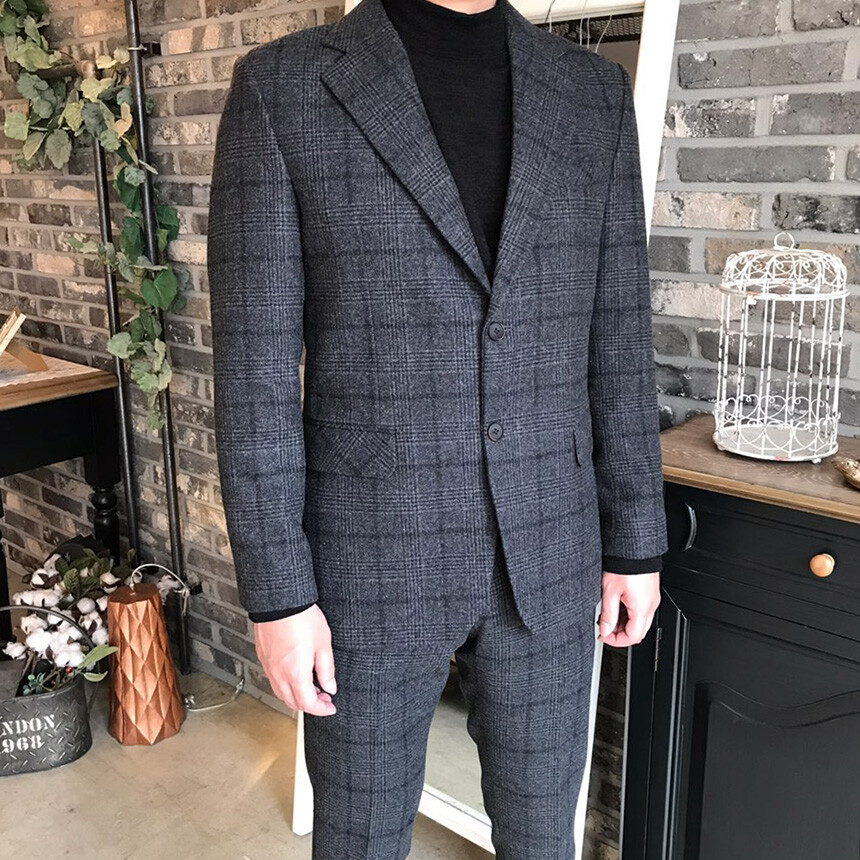 (winter) 진차콜 체크 기모 울50수트 [FLAW1538]