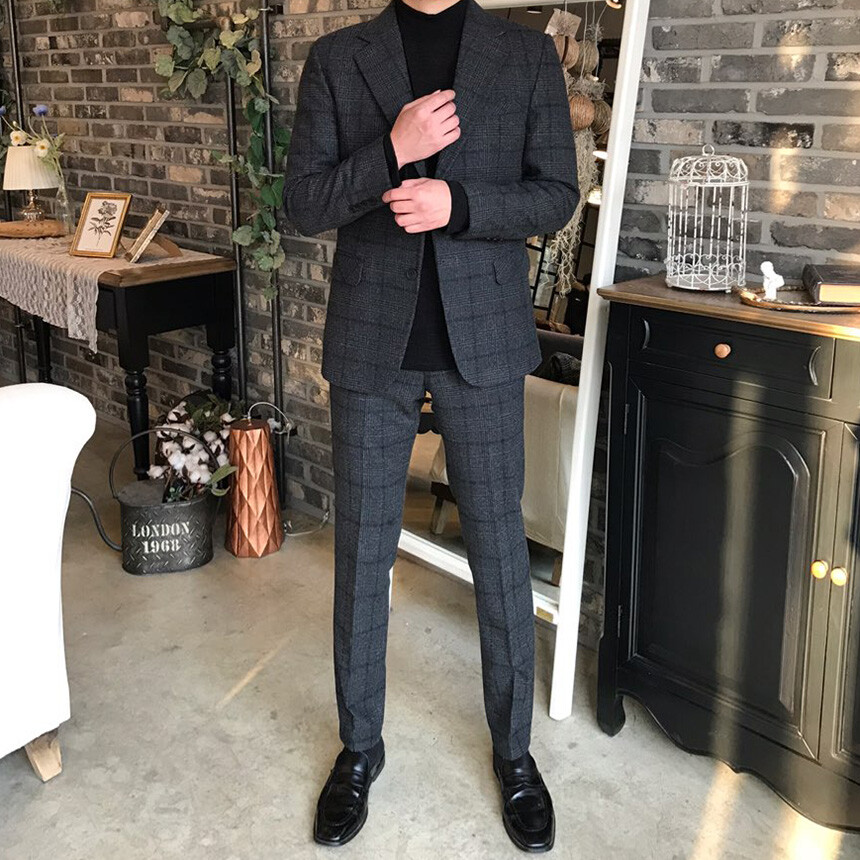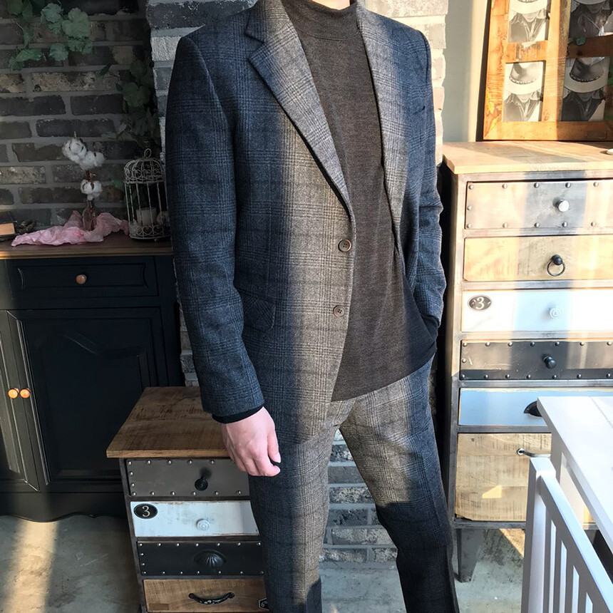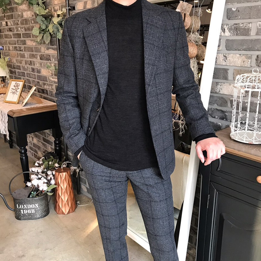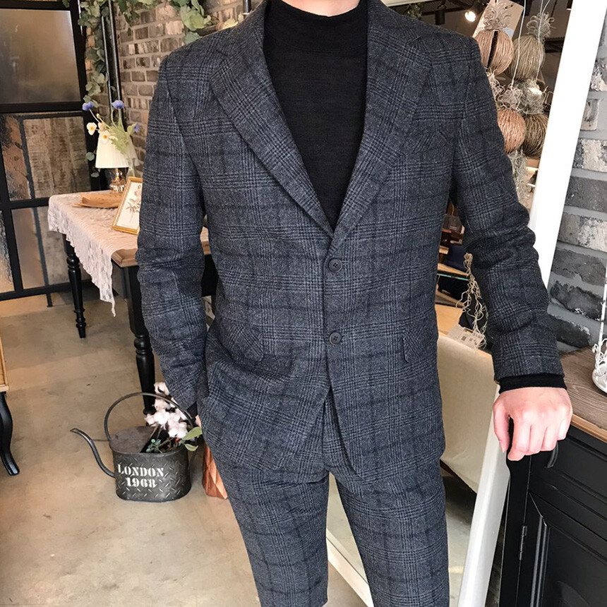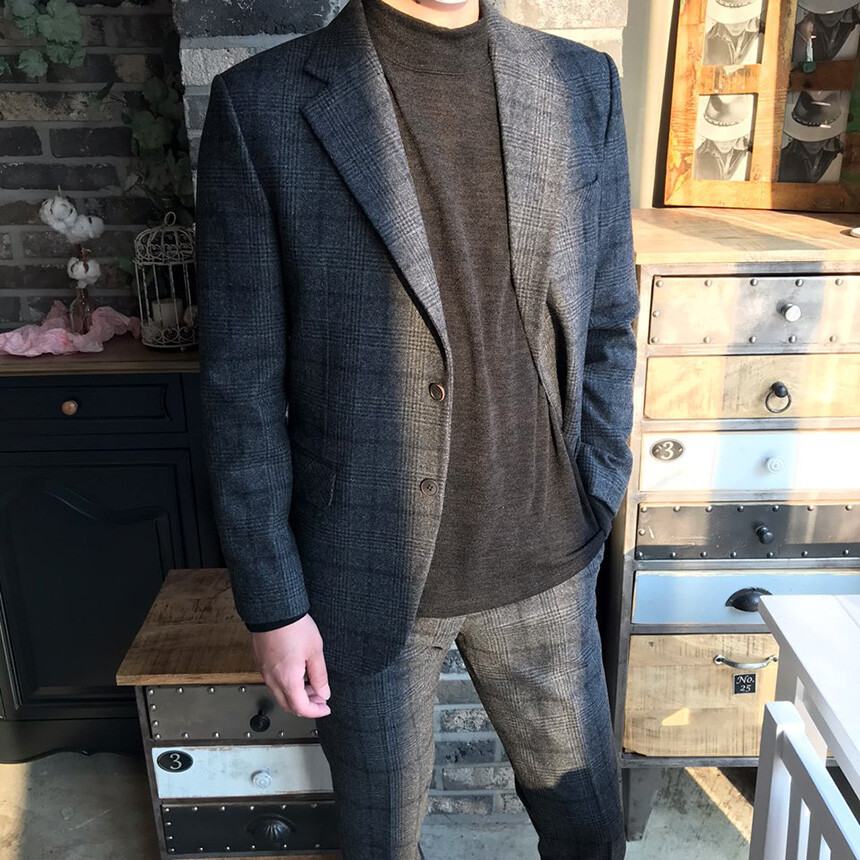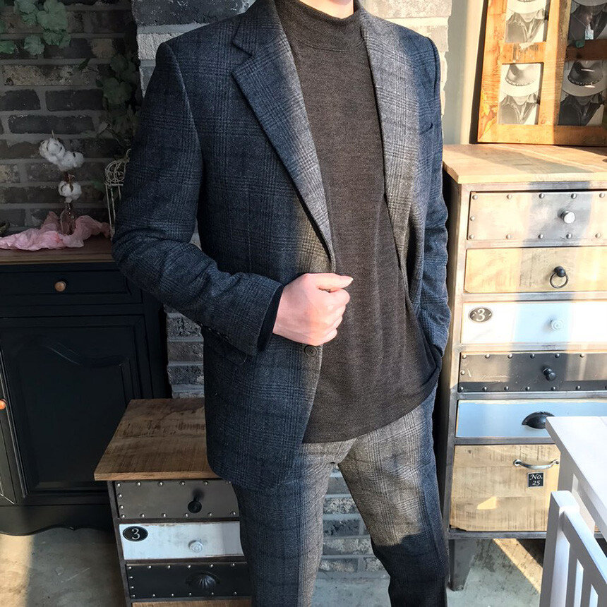 (winter) 진차콜 체크 기모 울50수트 [FLAW1538]
