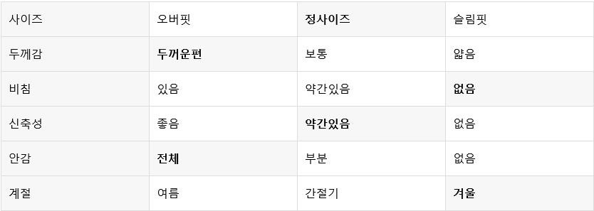 평소 입던 스타일과 달라 만족도가 낮을 수 있습니다
