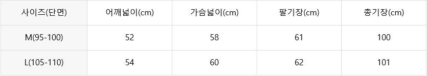- 사이즈는 재는 방법에따라 약간씩 다를 수 있으며, 기성복으로 대량생산하기 때문에 사이즈는 약간씩 오차가 있을 수 있습니다