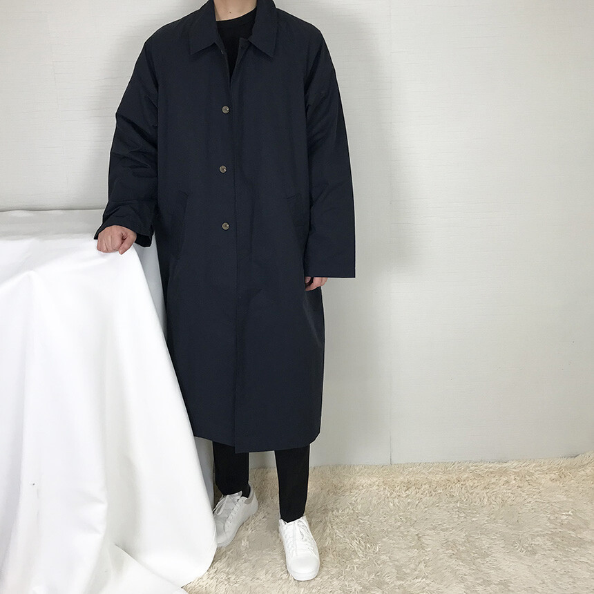 오버핏 히든 레인 롱맥코트
