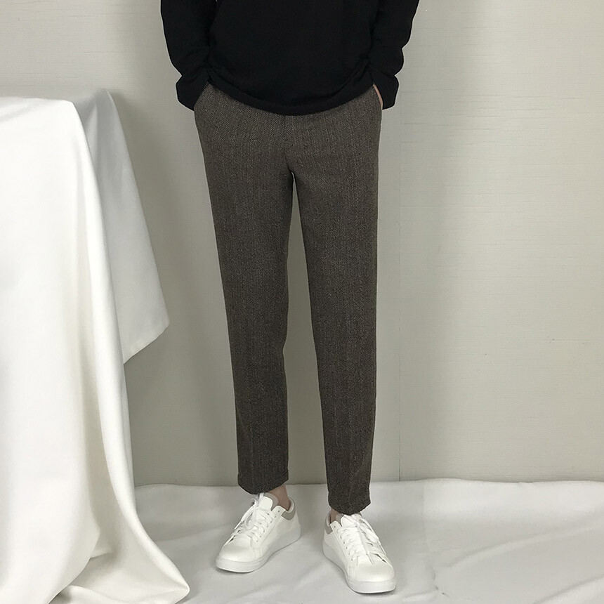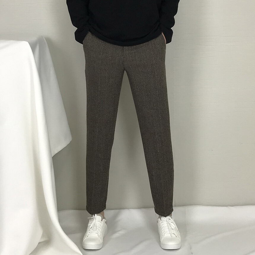 (winter) 브라운 믹스 헤링본 모직 슬랙스 [FLCW1912]