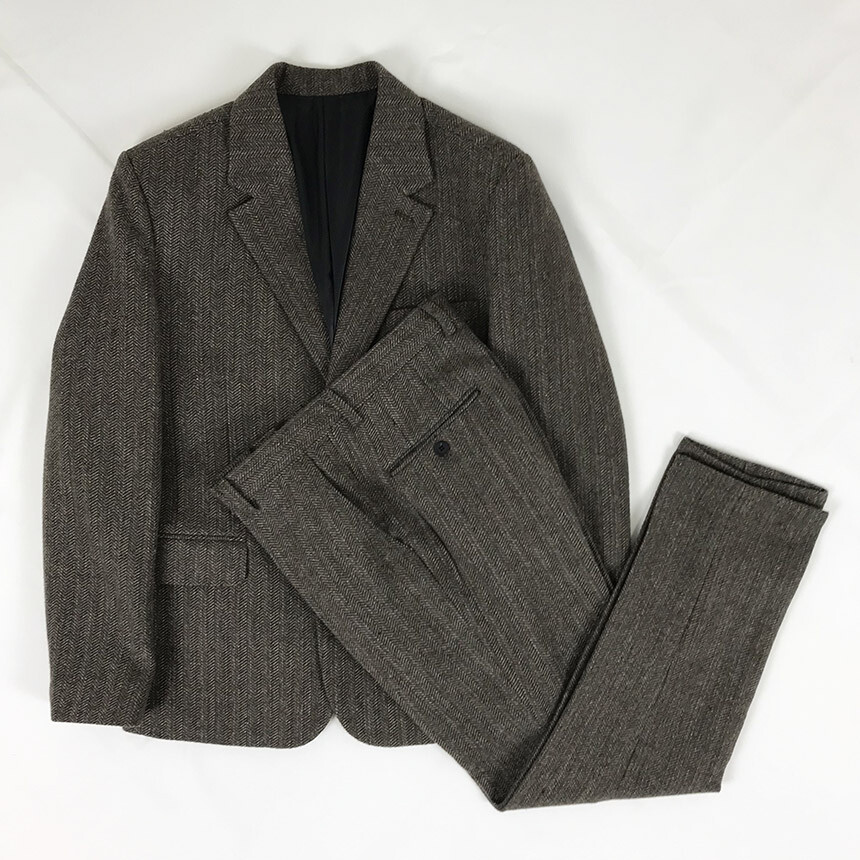 브라운 믹스 헤링본 모직 슬랙스