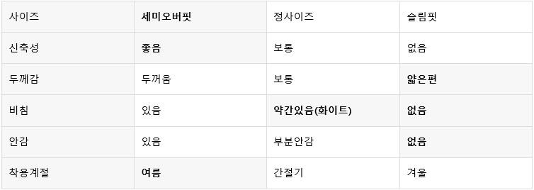 평소 입던 스타일과 달라 만족도가 낮을 수 있습니다