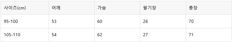 예시)본인사이즈100이면 100-105사이즈 구매 권장