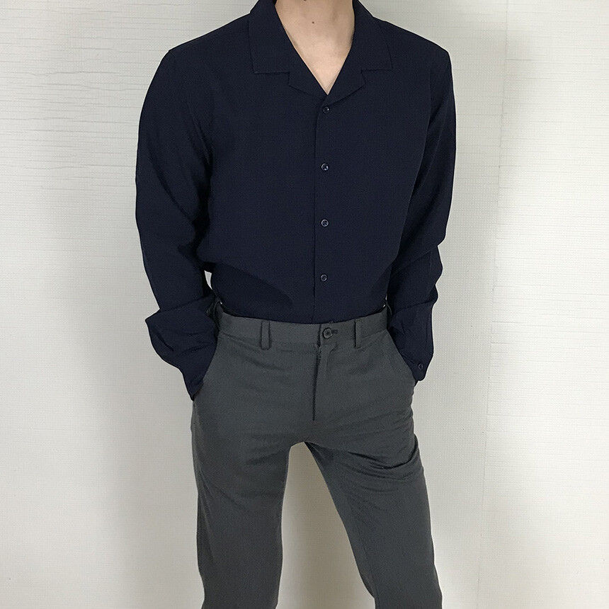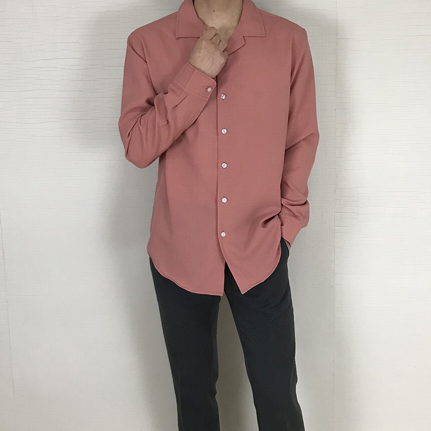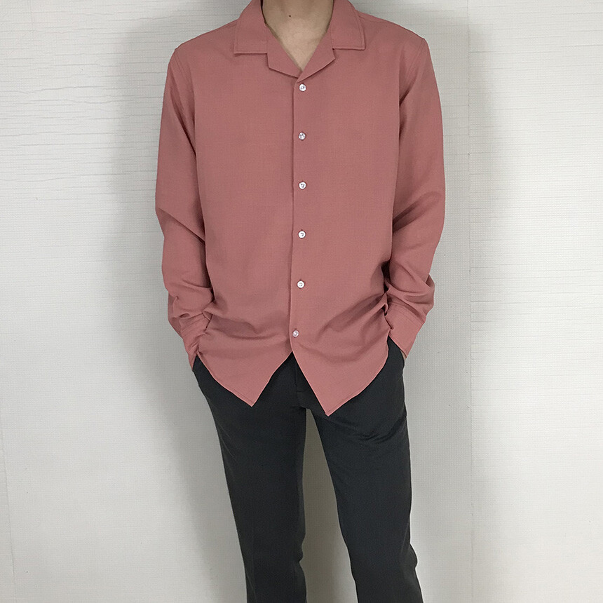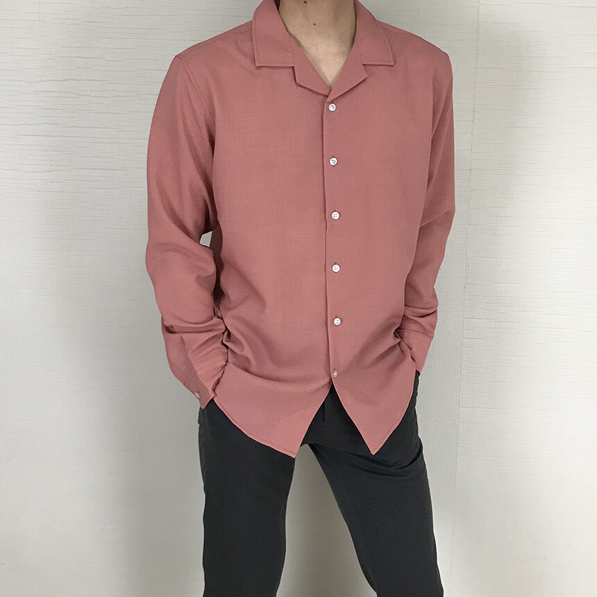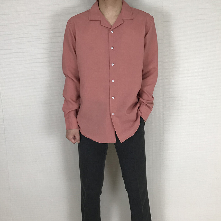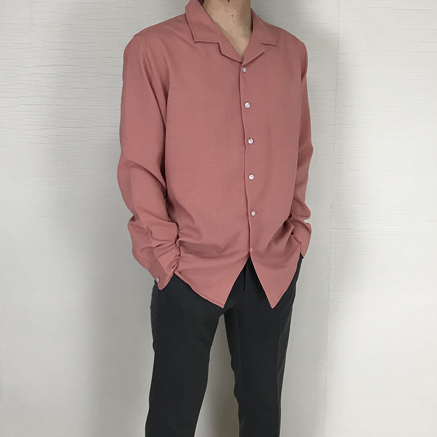 (spring) 세미오버핏 린넨 오픈카라 무지셔츠(3col) [0052]
