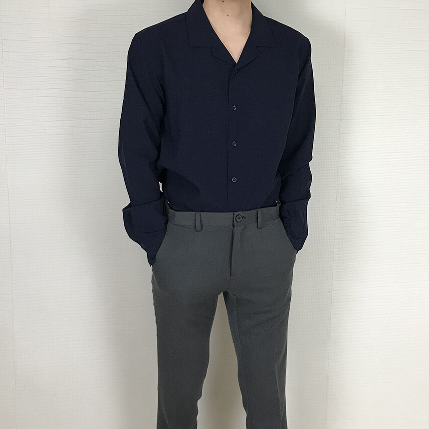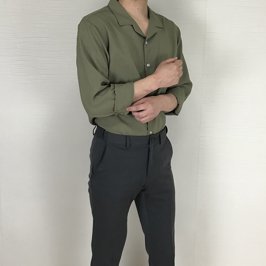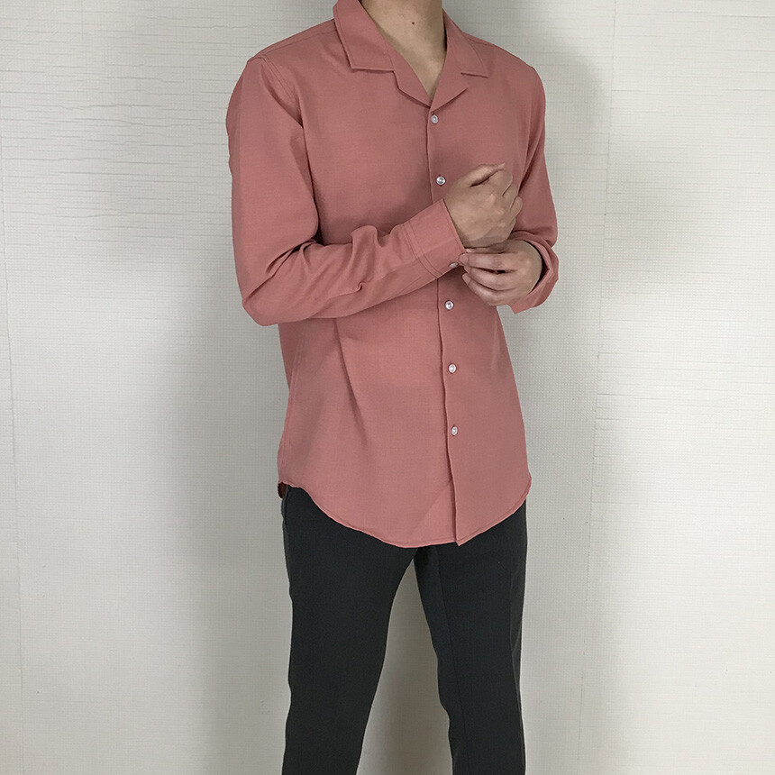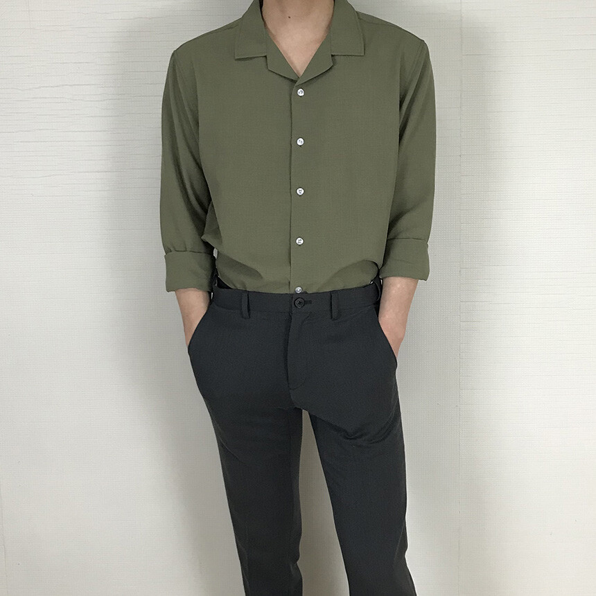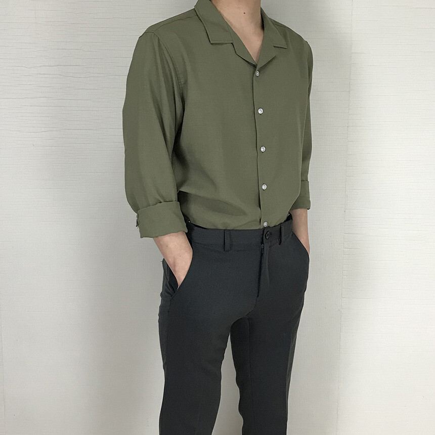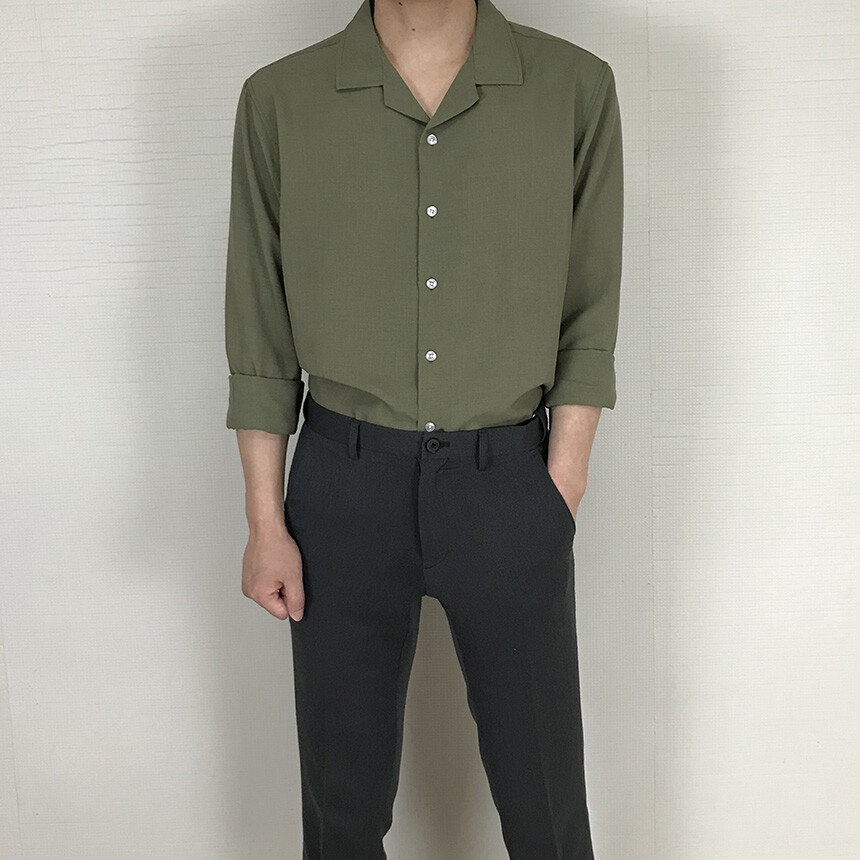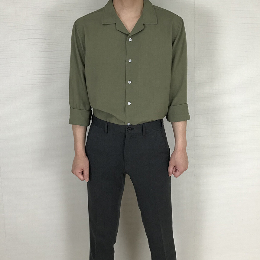 (spring) 세미오버핏 린넨 오픈카라 무지셔츠(3col) [0052]