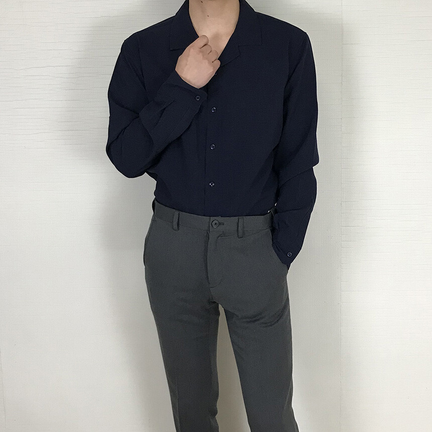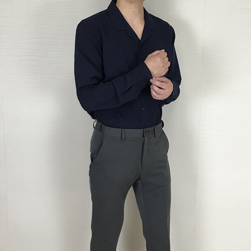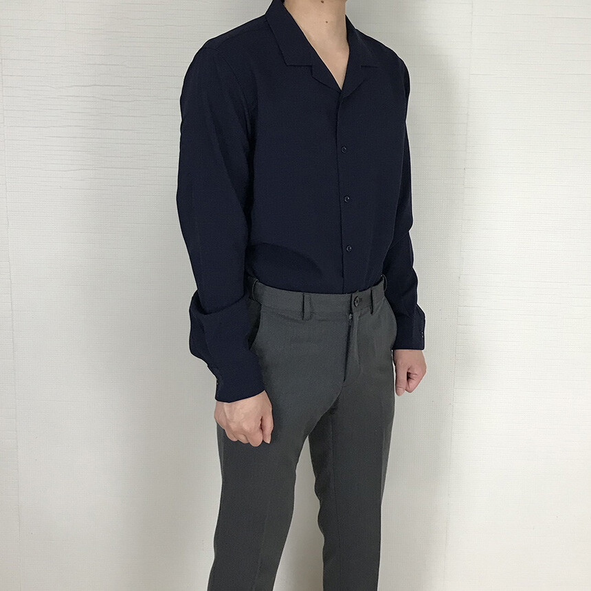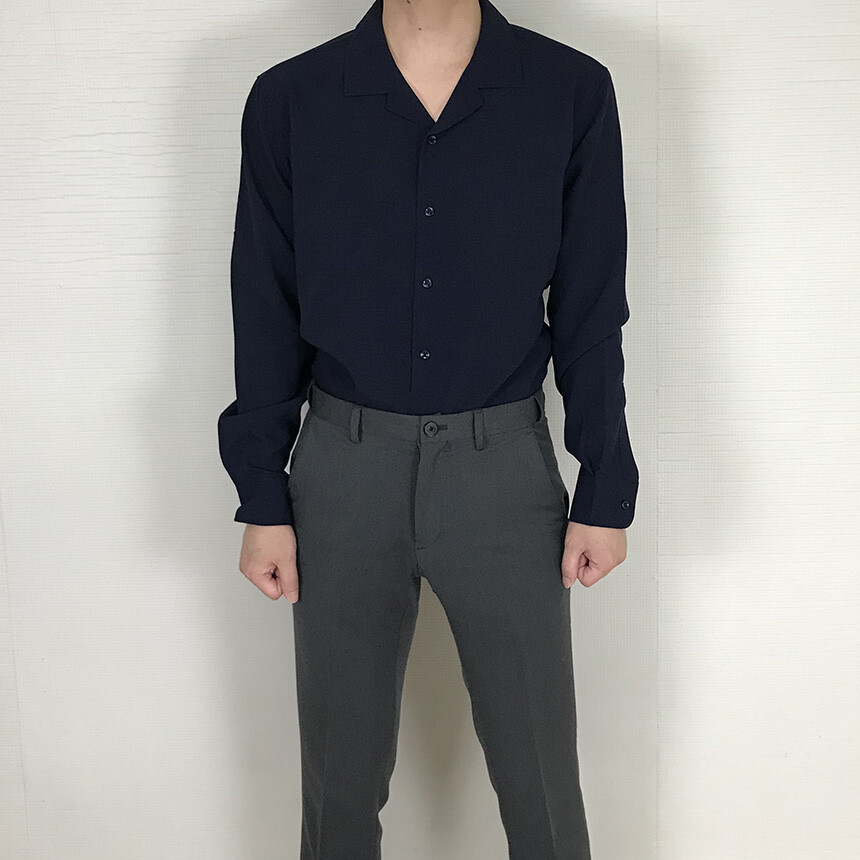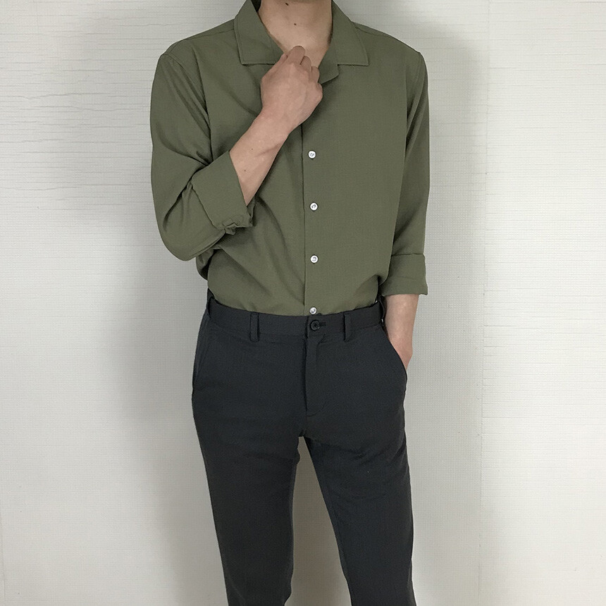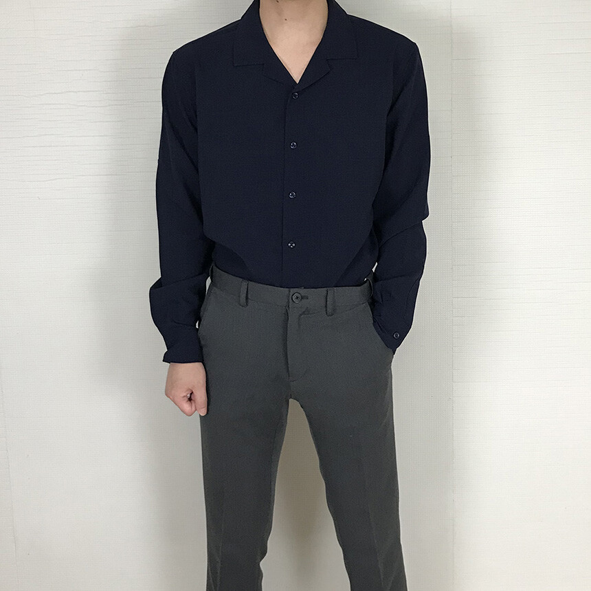 (spring) 세미오버핏 린넨 오픈카라 무지셔츠(3col) [0052]
