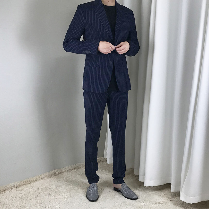 SI 슬림라인 네이비 스트라이프 클래식 수트