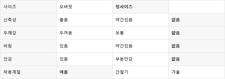 평소 입던 스타일과 달라 만족도가 낮을 수 있습니다