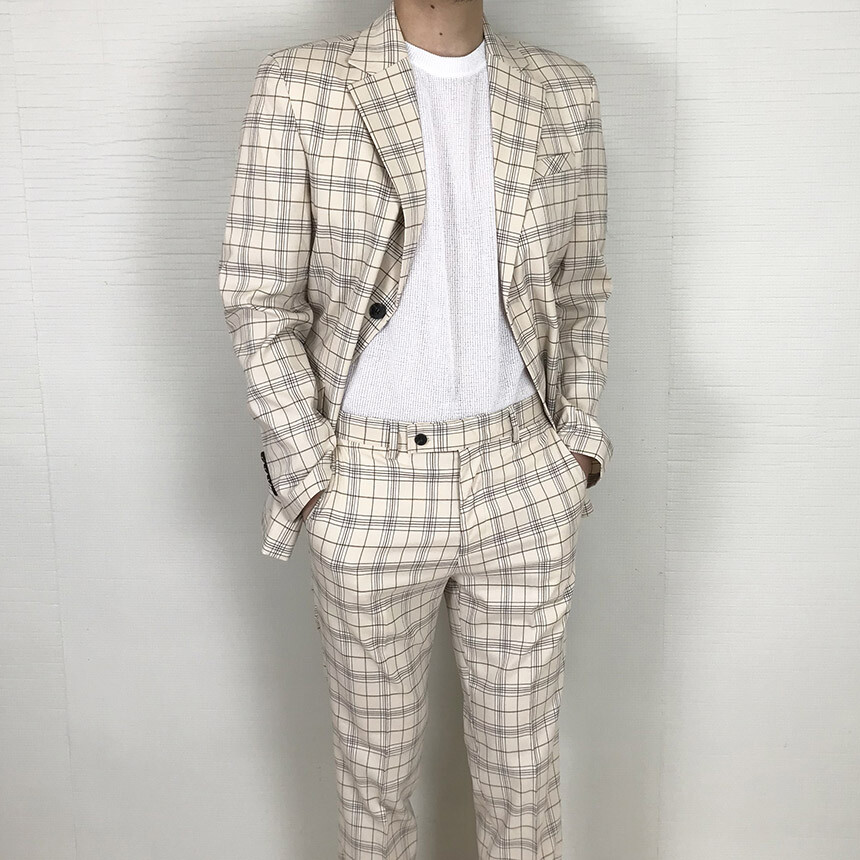 KM 크림 체크 쓰리피스 수트