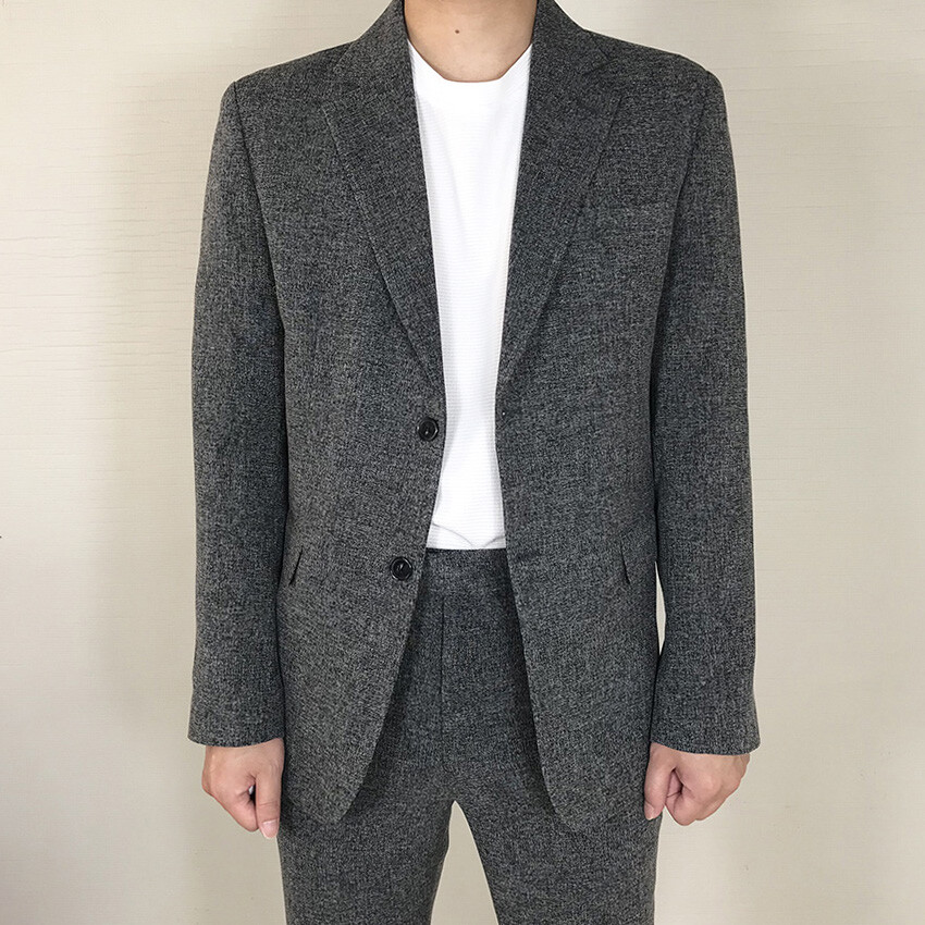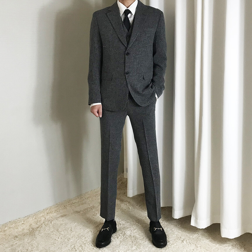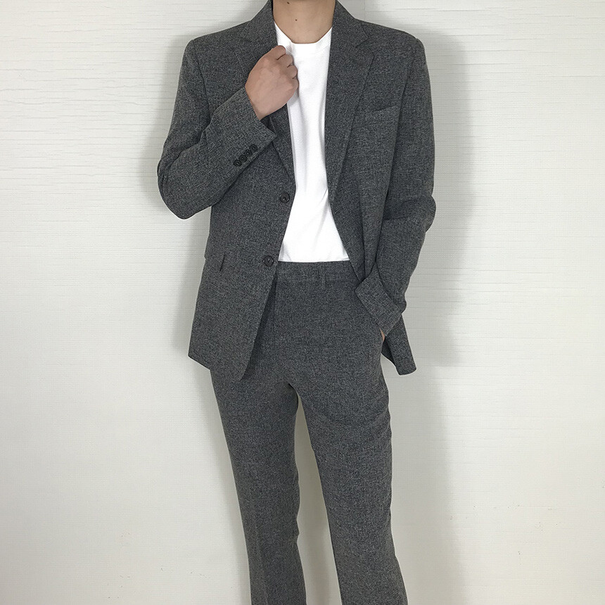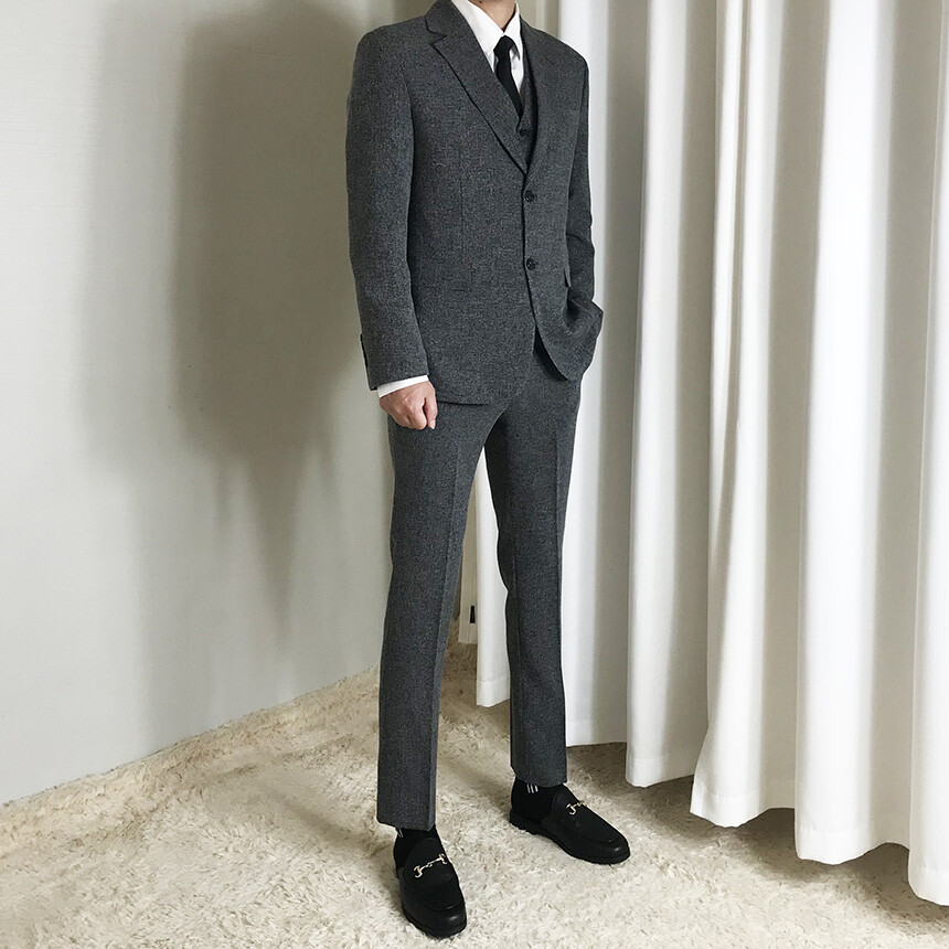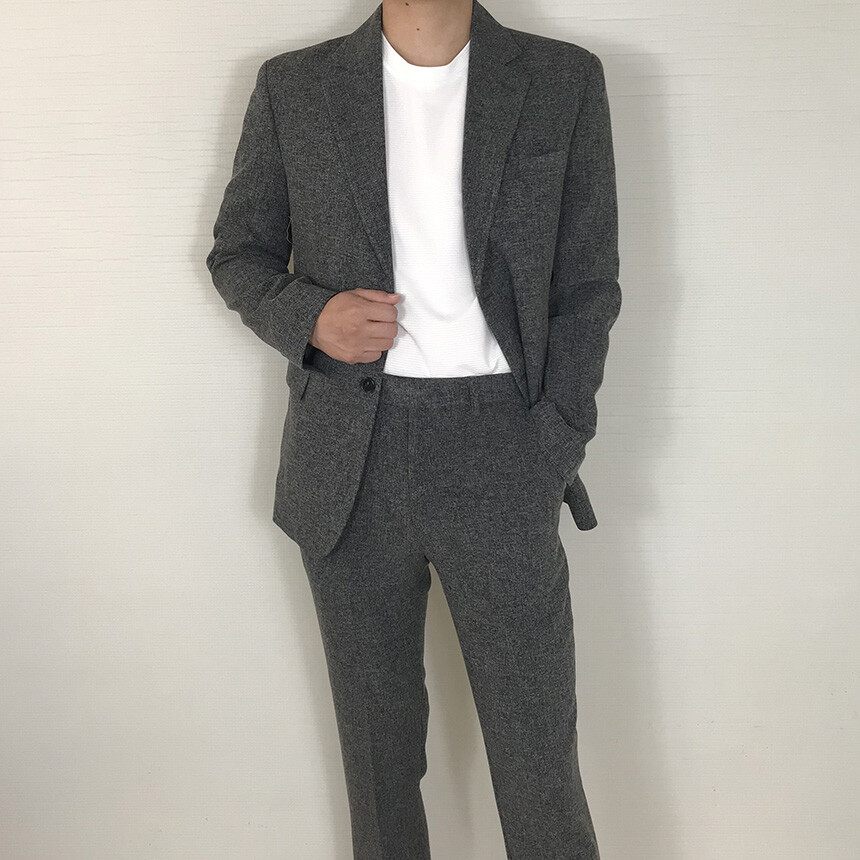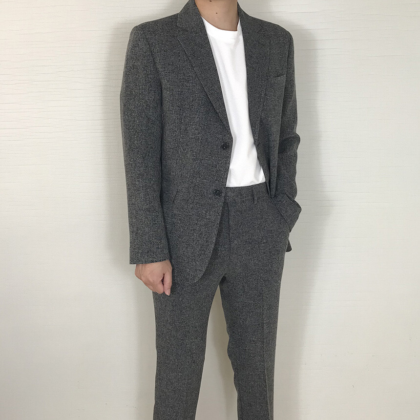 (spring) 슬림라인 멜란지차콜 캐주얼 셋업 [1633]