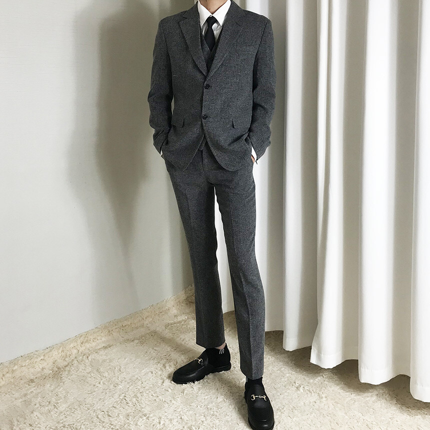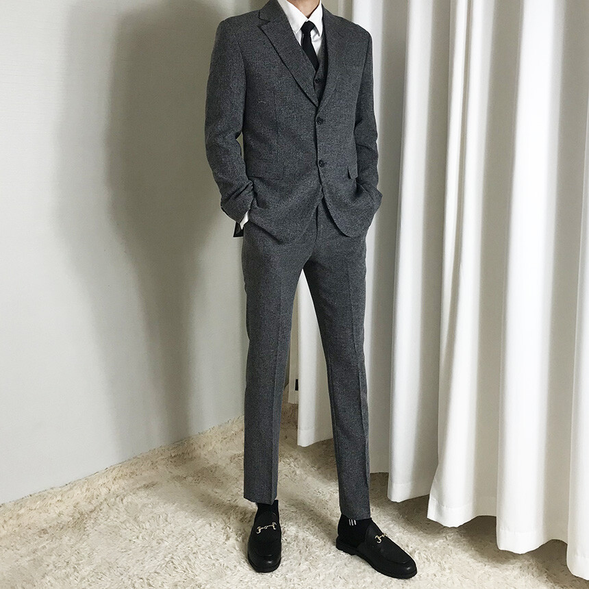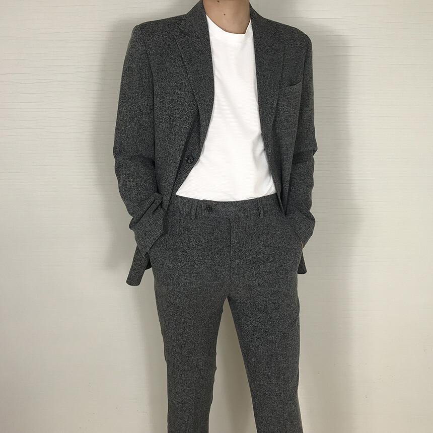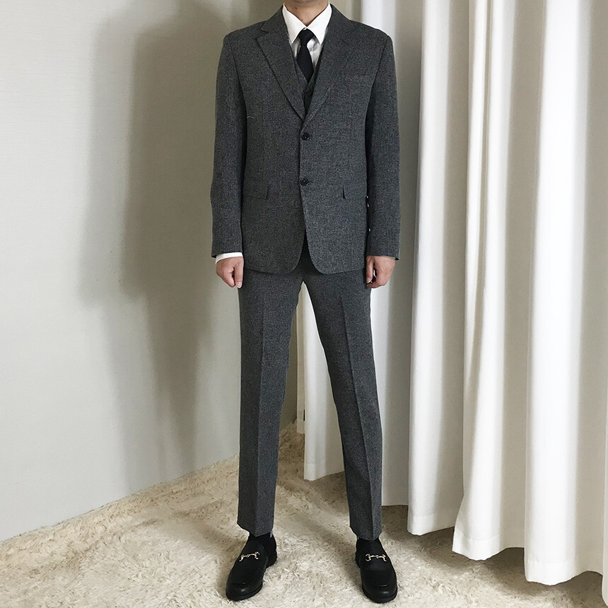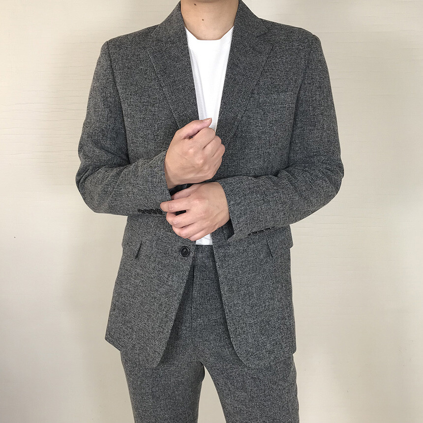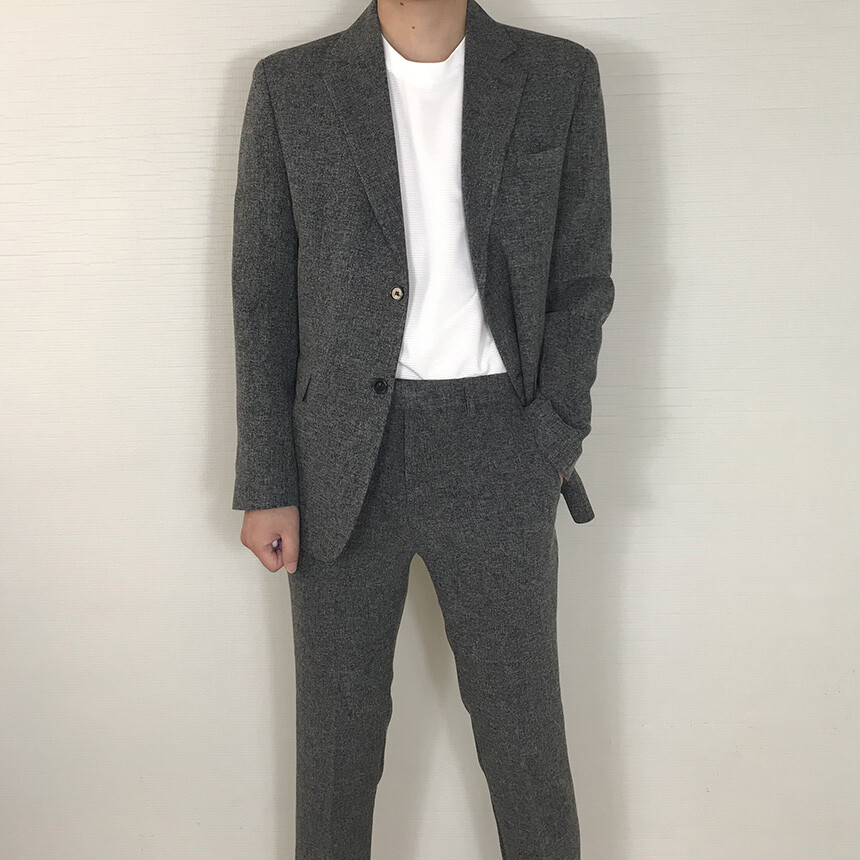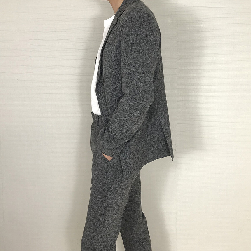 (spring) 슬림라인 멜란지차콜 캐주얼 셋업 [1633]