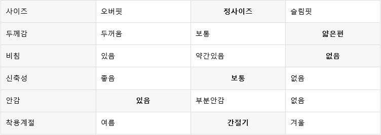 평소 입던 스타일과 달라 만족도가 낮을 수 있습니다