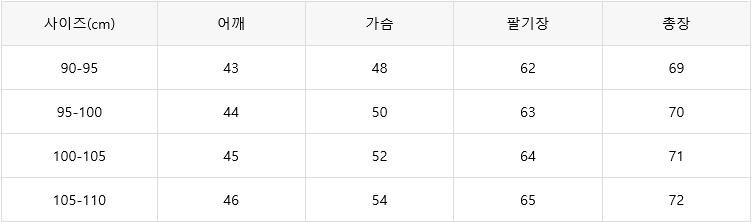 예시)본인사이즈100이면 100-105사이즈 구매 권장