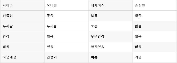 평소 입던 스타일과 달라 만족도가 낮을 수 있습니다