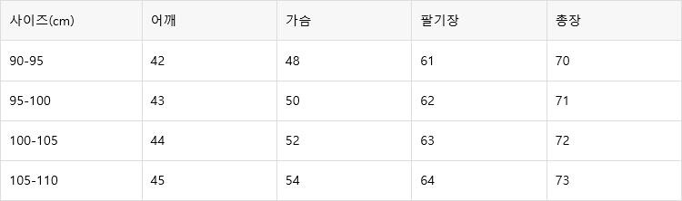예시)본인사이즈100이면 100-105사이즈 구매 권장