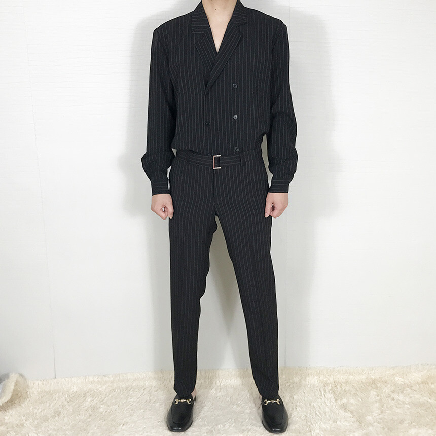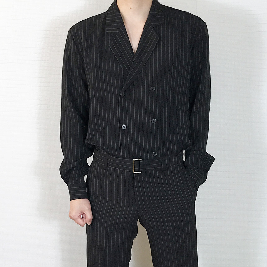 (summer) 세미오버핏 스트라이프 더블셔츠 슬랙스 셋업 [FLEM1945]