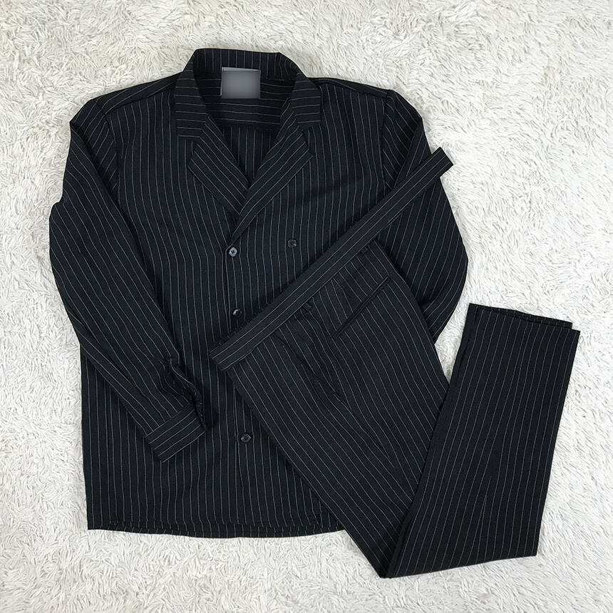 세미오버핏 스트라이프 더블셔츠 슬랙스 셋업