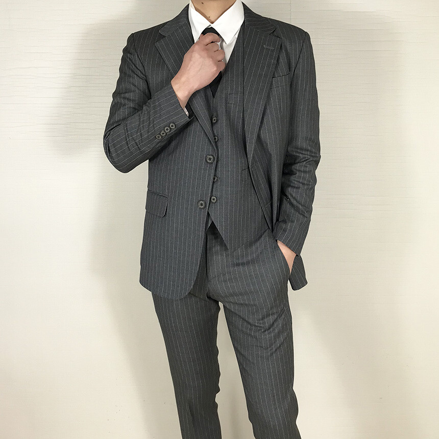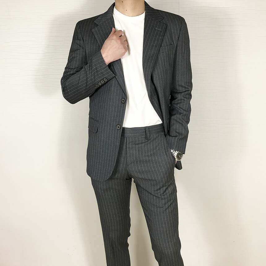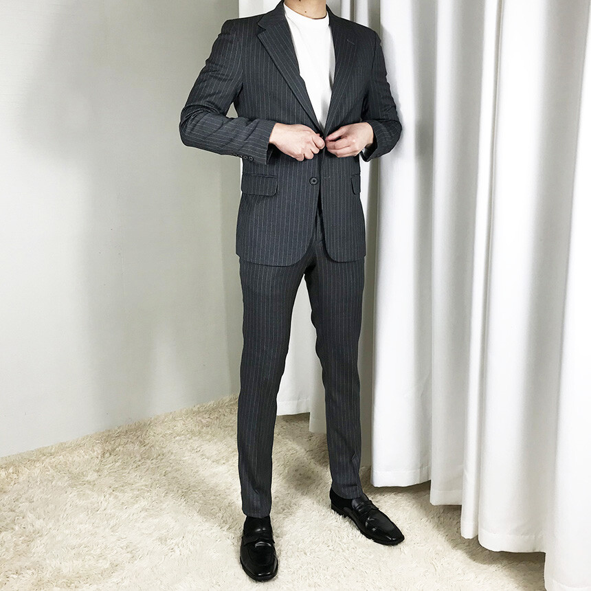 (spring) 슬림핏 그레이 스트라이프 세미정장 [1572]