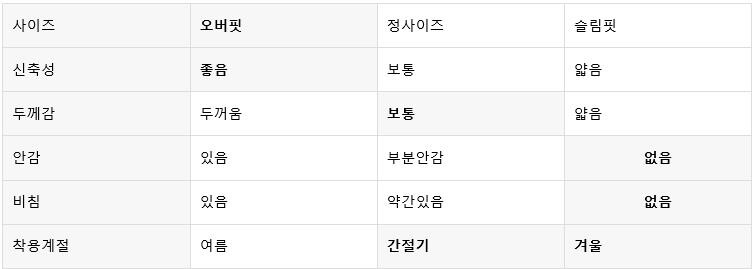 평소 입던 스타일과 달라 만족도가 낮을 수 있습니다