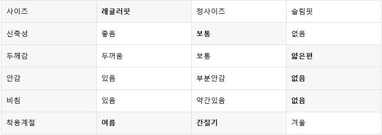 평소 입던 스타일과 달라 만족도가 낮을 수 있습니다