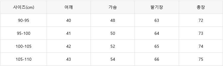 예시)본인사이즈100이면 100-105사이즈 구매 권장