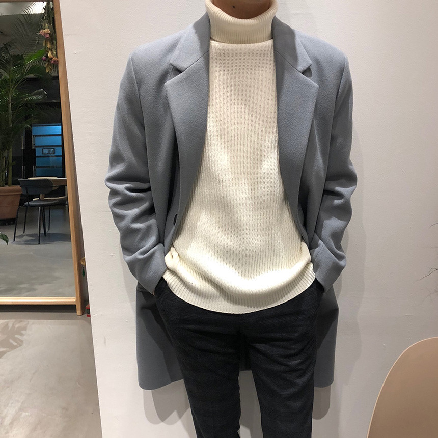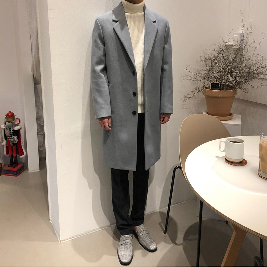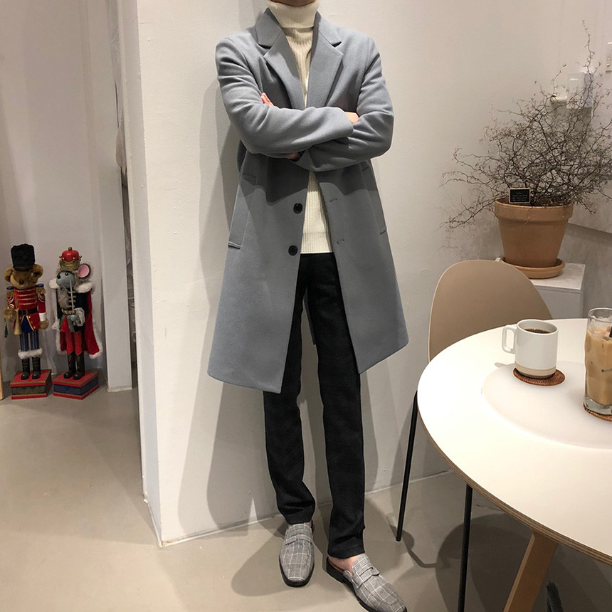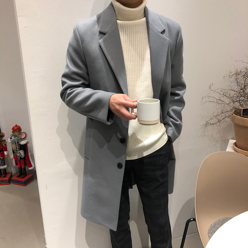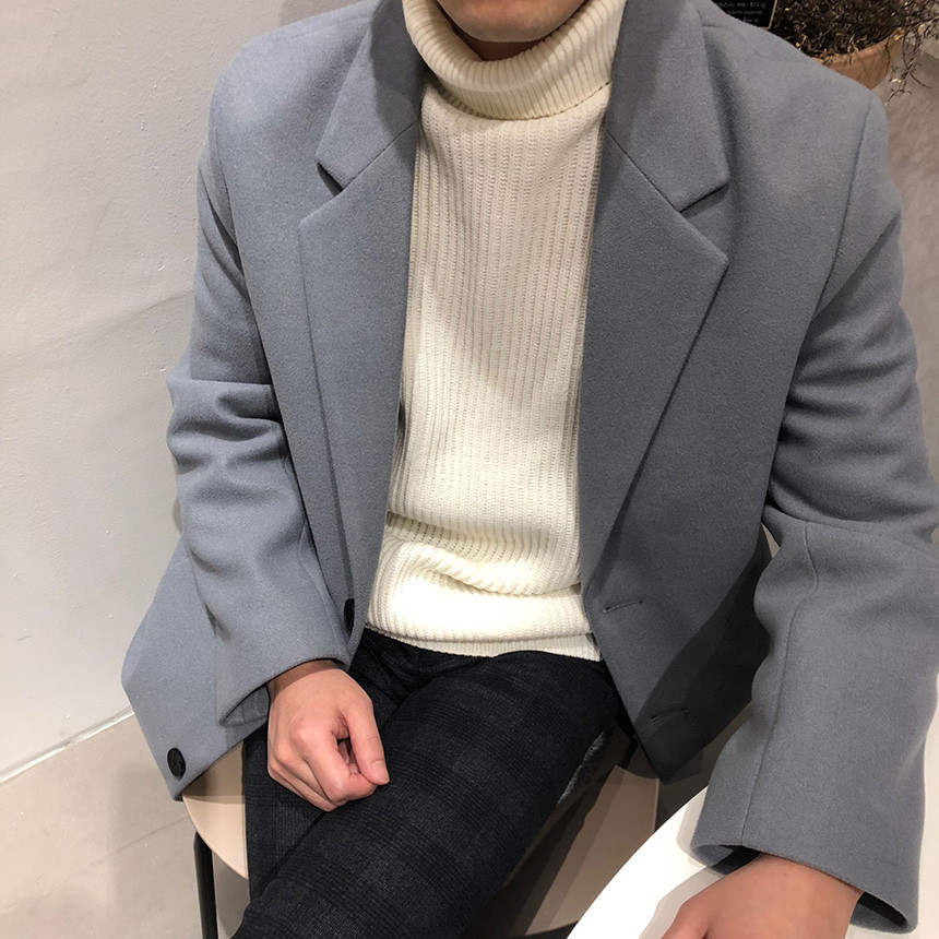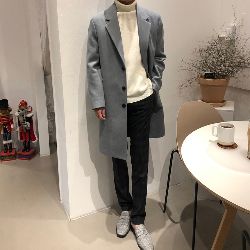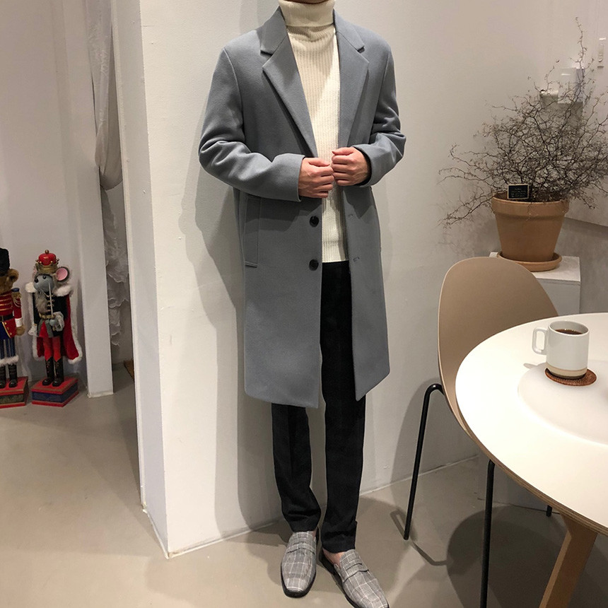(winter) 세미오버핏 스카이블루 울50% 싱글코트 [5011]
