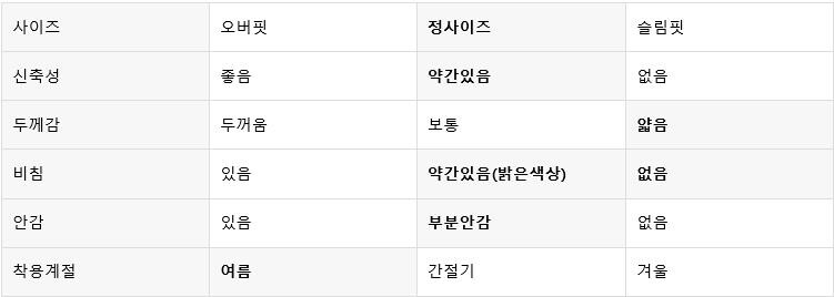 평소 입던 스타일과 달라 만족도가 낮을 수 있습니다